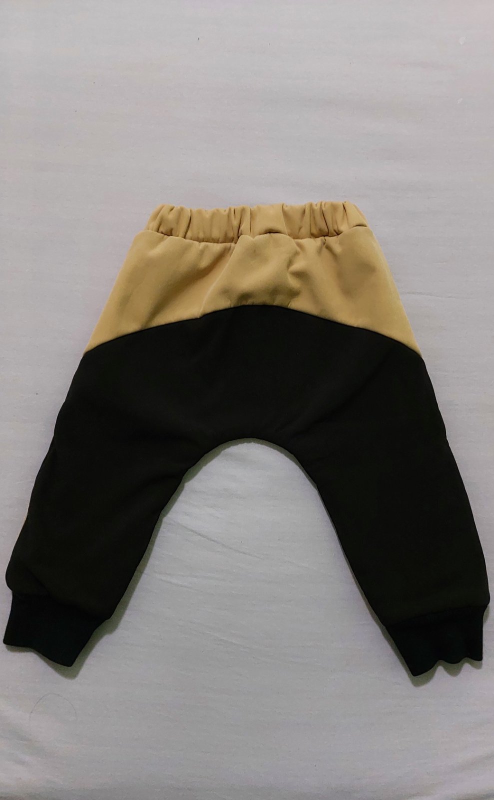Nemajú štítok bohužiaľ. Veľkosť odhadom 80/86 (syn teraz nosí 92 a sú mu krátke, preto ich aj predávam). V prípade záujmu zmeriam. Zozadu sú viac čierne.