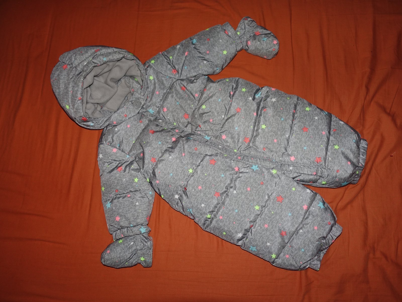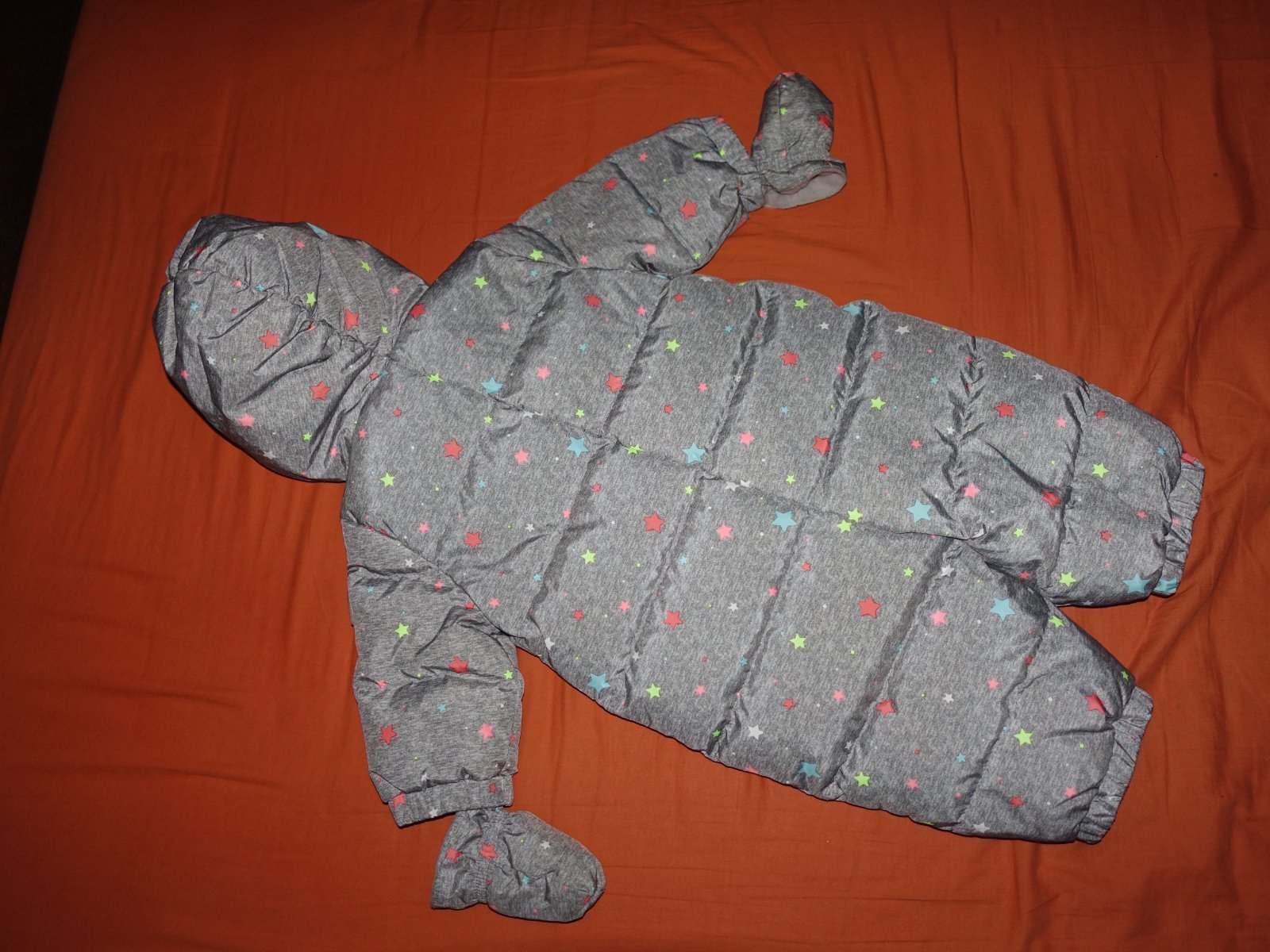 Nadherna kombinezka vo vybornom stave. Je teplucka, vypchata paperim. Velkost je uvedena na 0-6mesiacov.