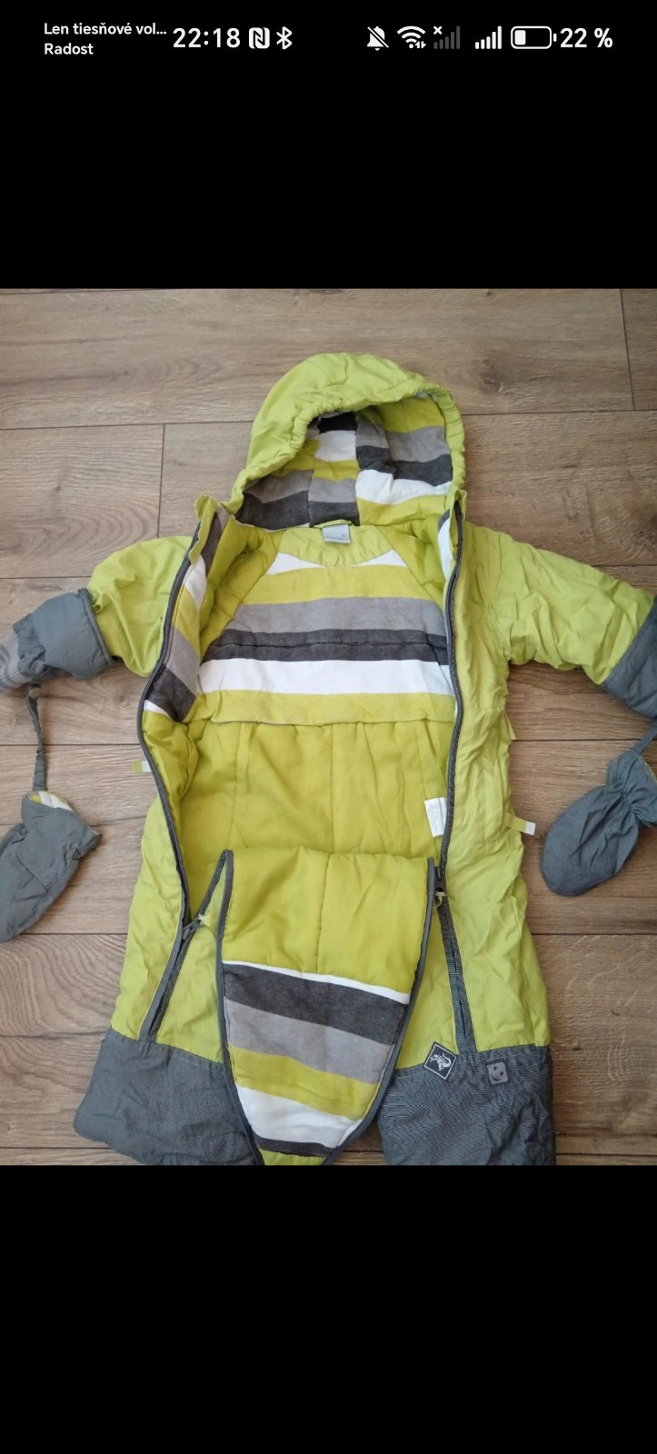 Veľmi pekný overal na zimu v super stave žlto zelená farba s rukavicami
