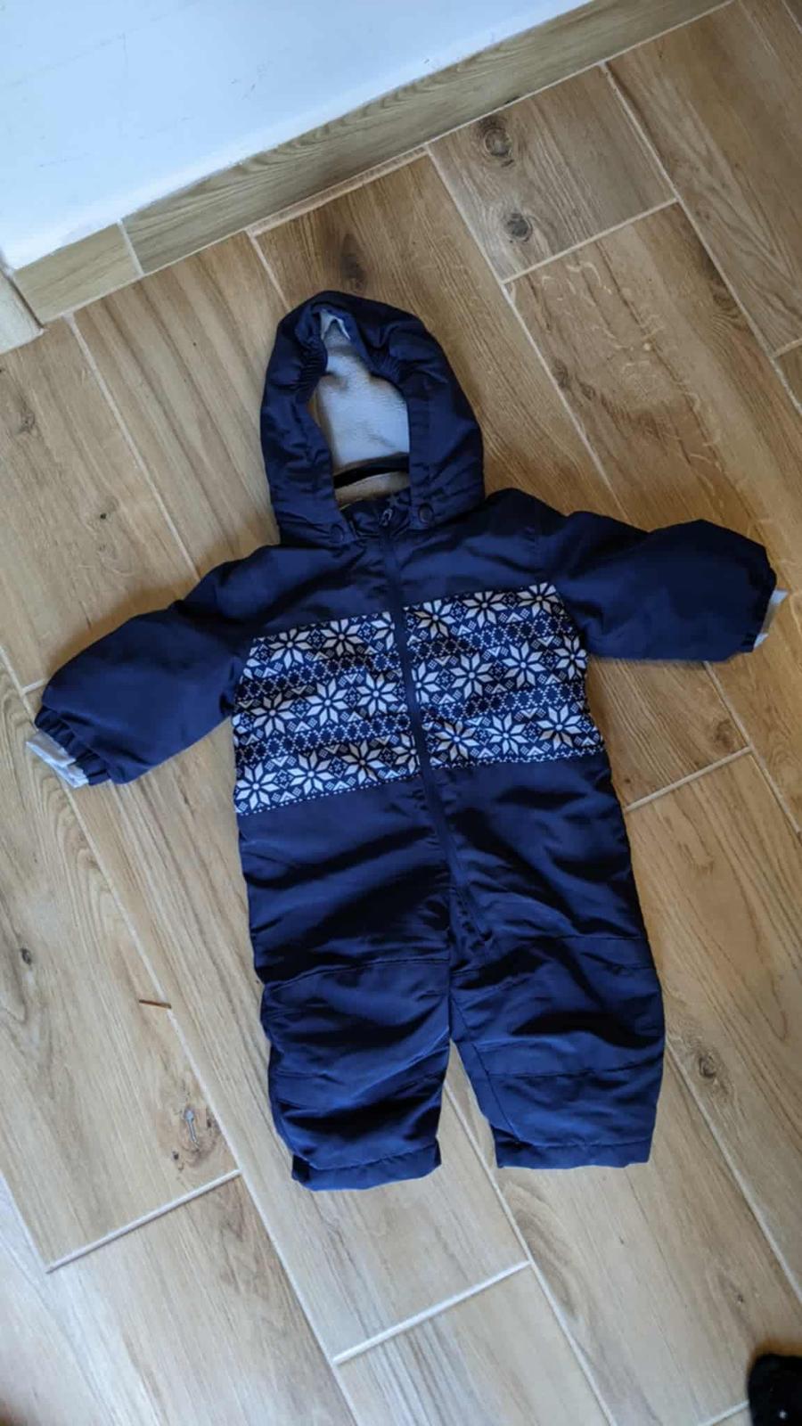 Overal tmavomodrý s vločkami 62/68 - 5€