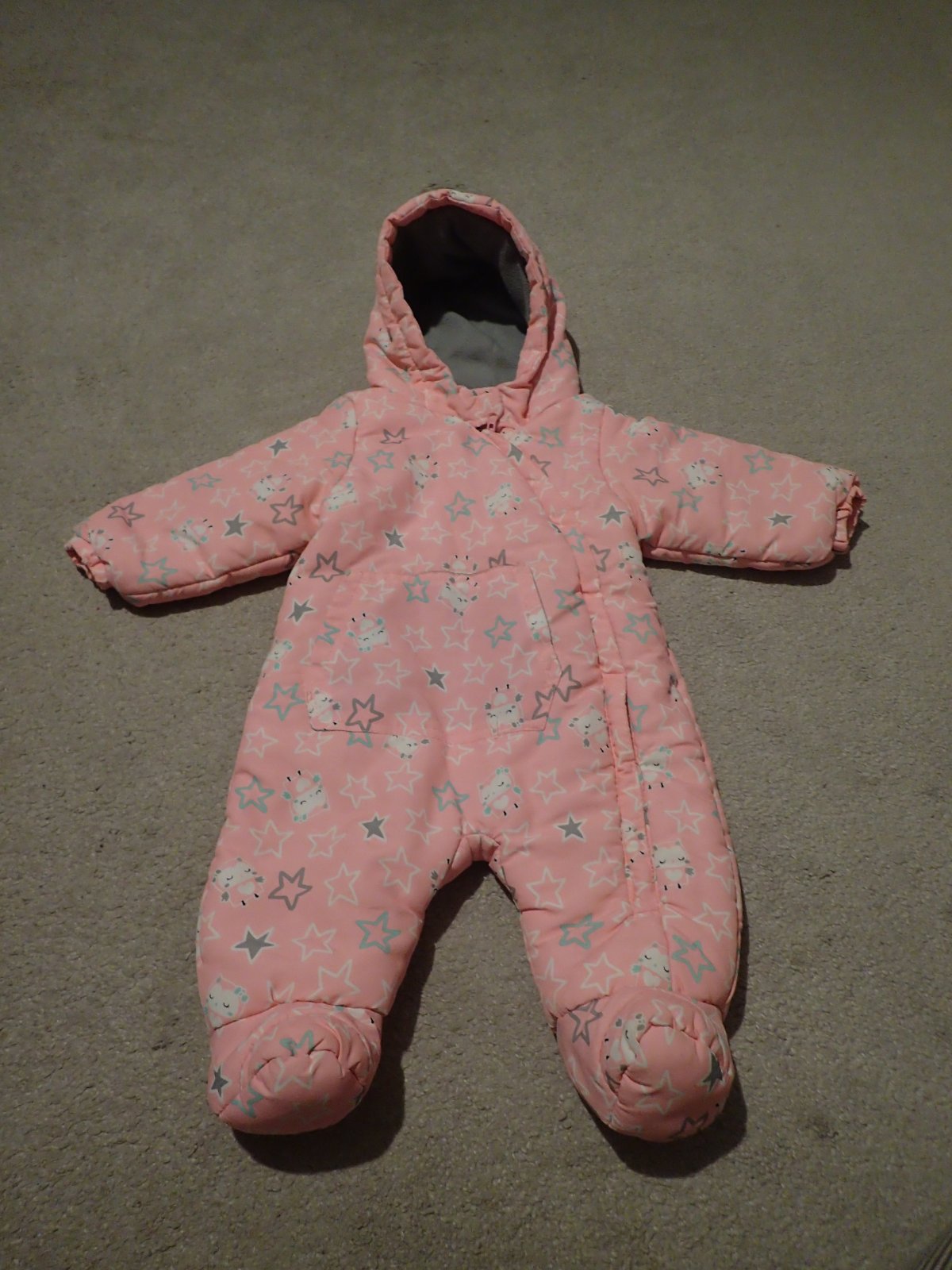 Predám tento zimný overal pre dievčatko. Veľkosť 74. Nosený, bez poškodenia.