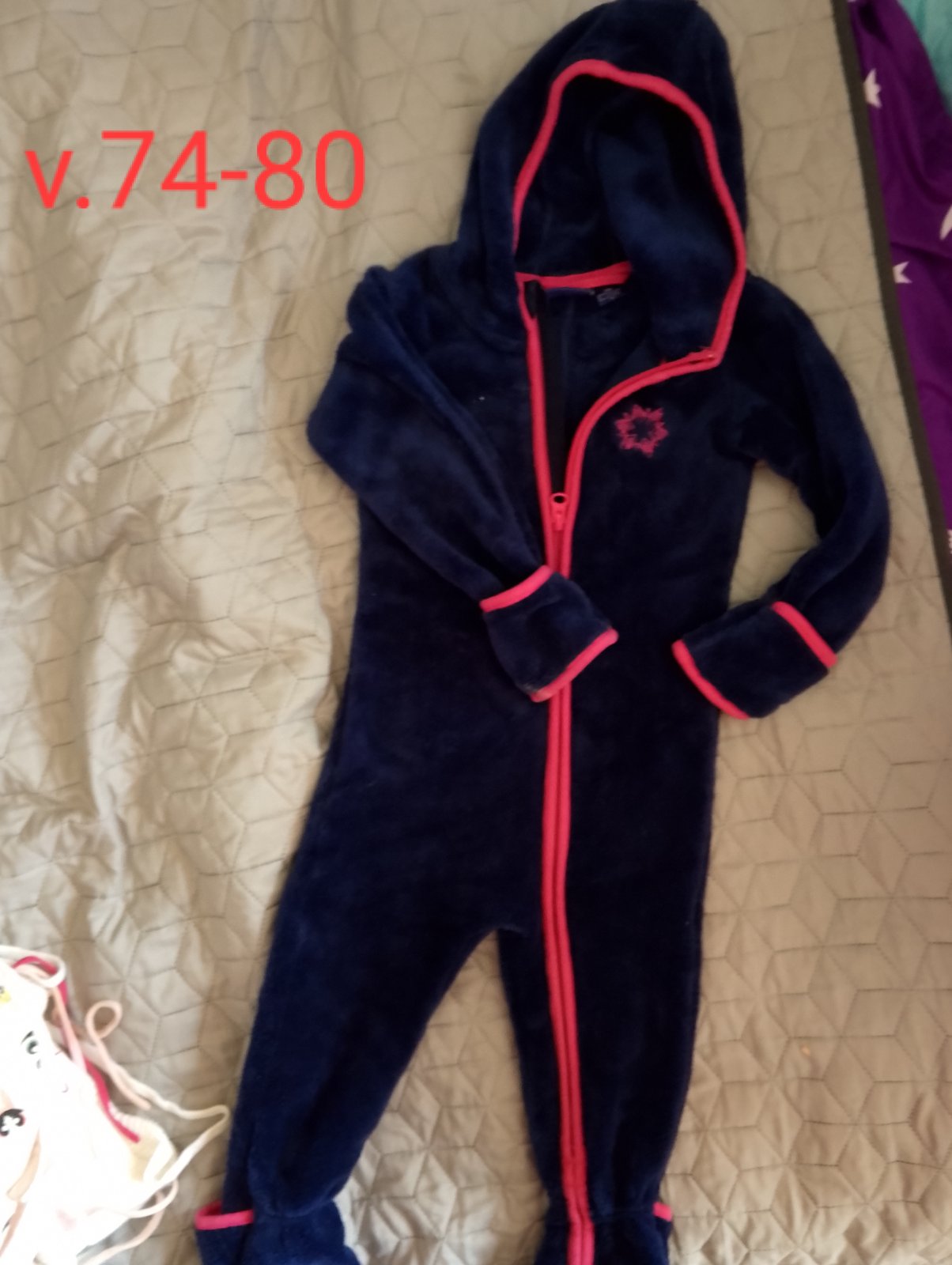 Ponukam na predaj dievcensky overal, dlzka 75 cm v nie je uplne hruby cize dieta sa tak nepoti, vhodny na sanky., lyže . stacia pod to leginy, alebo hrubsie pancuchy, suprovy, dieta zahreje.