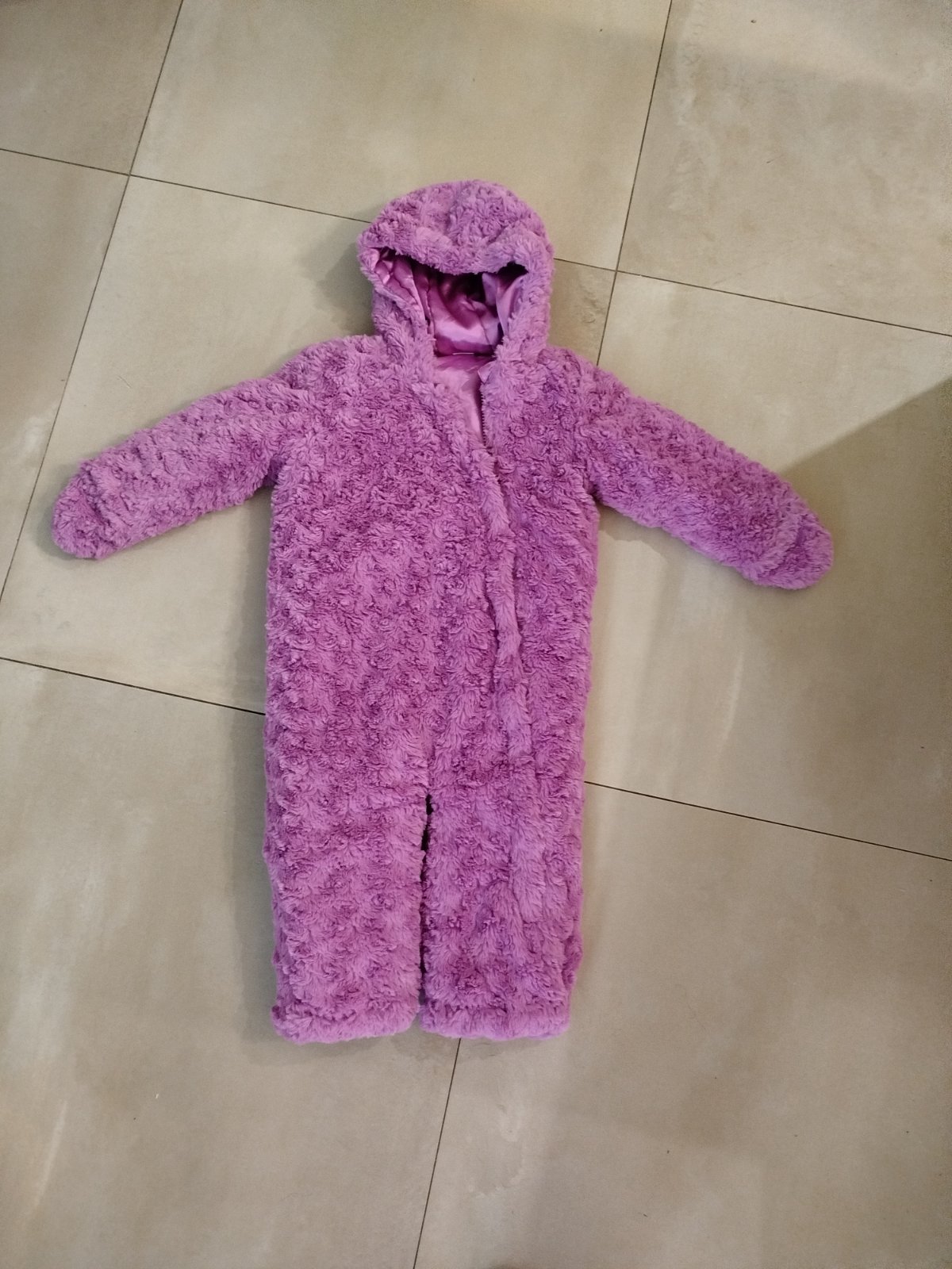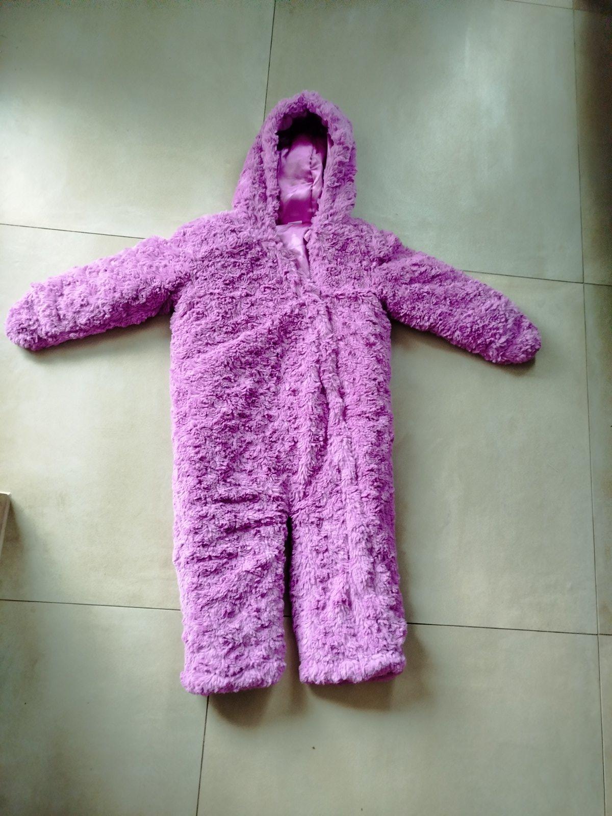 Krásny overal F&F malinovej farby, veľkosť písaná 18-24m ale podľa mňa lepšie sadne na v.86, overal má pretáčacie rukávy takže ruky je možné schovať, bol nosený na striedačku s druhým