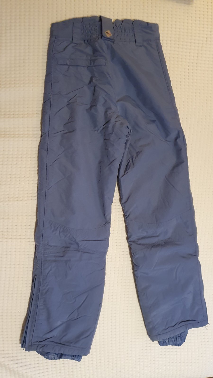 Bledomodré, ako nové, akurát dole na nohe maly rez od lyžiarky nieje vidieť, dá sa pekne zašiť, veľkosť 36, mam k ním aj vetrovku