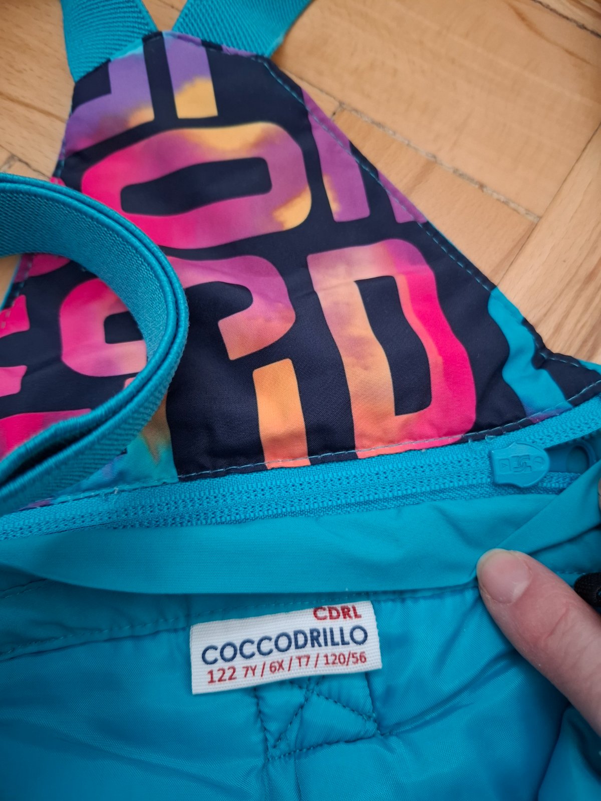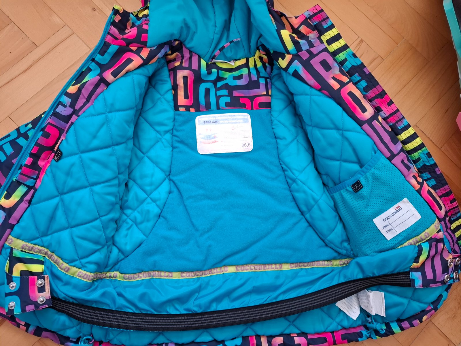 Krásna tyrkysová lyžiarska súprava značky Coccodrillo. Oboje nosené, vyčistené a naimpregnované. Bunda stále v dobrom stave. Má bedrový pás, aj zips na rukáve na lístok na vlek. Nohavice majú opravený spodok a na jednej nohavici je menšia dierka a na kolene dva fľaky (viď fotky). Rozmery bundy dĺžka 54cm, rukáv 47cm, šírka 42cm. Nohavice celková dĺžka 73cm, od rozkroku 51cm.