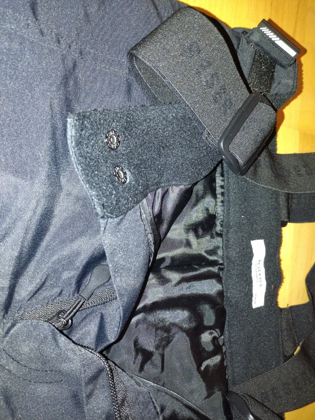 Málo nosené otepľovačky, značky Reserved, veľ. 140, nepremokavé, vhodné do snehu a na lyžovačku. Po stranách majú reflexné pruhy, zipsy na spodku nohavíc, nastaviteľné traky a pás. Zapínanie na zips a dve patentky/gombíky. Vnútorná dĺžka nohavice 54 cm.