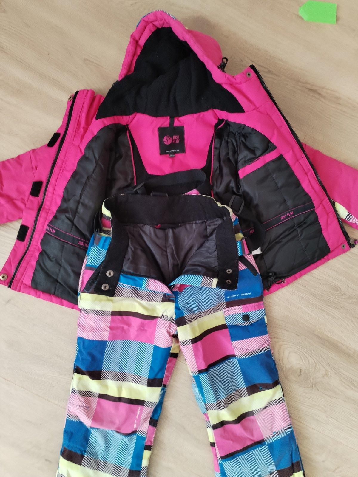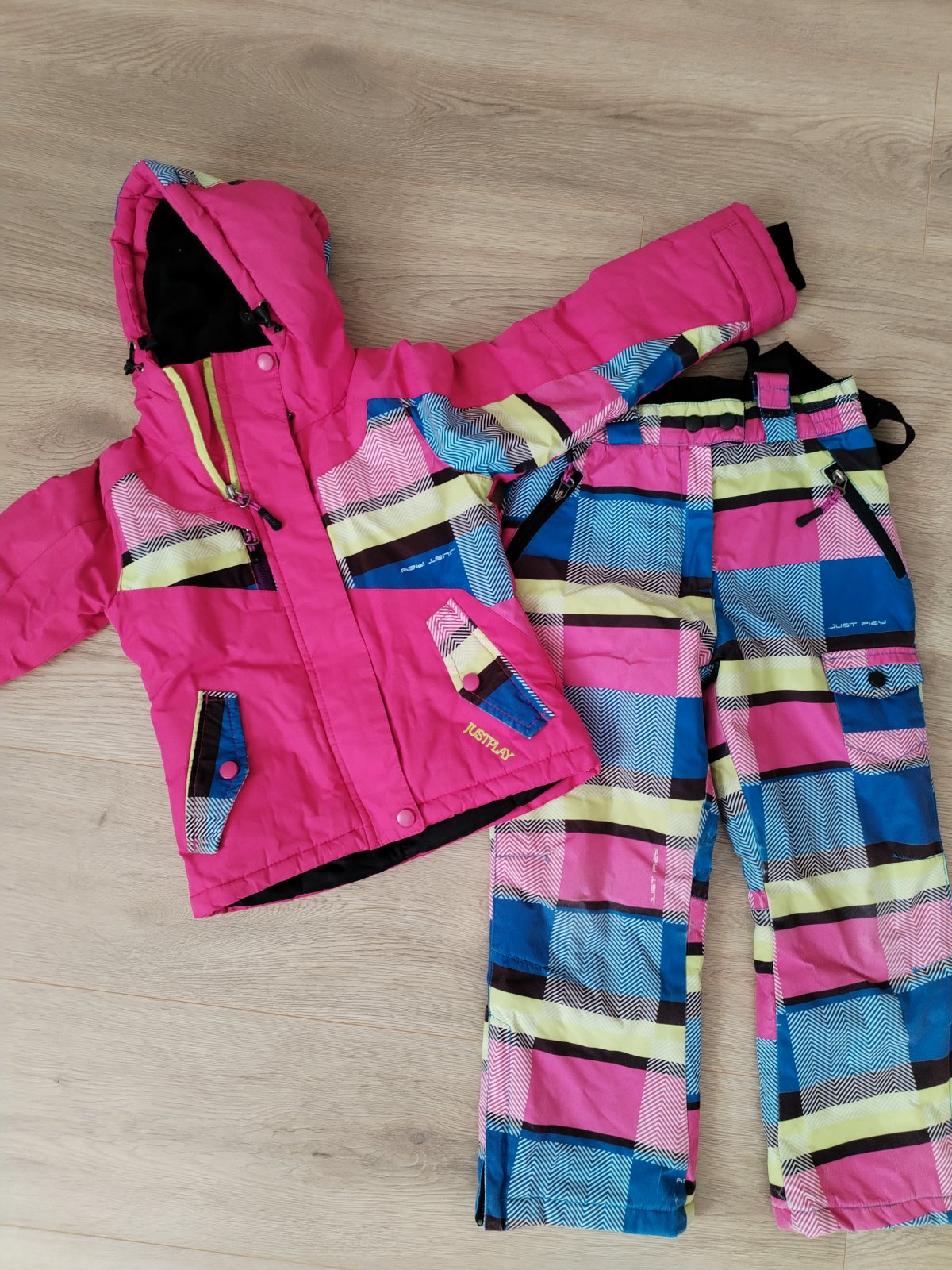 Komplet, píše veľkosť 104/110, ale sedí skôr na 110/116. Nosený ale na do nosenie ešte poslúži, mali sme dva. Odporúčam skôr na štíhle dievčatko kvôli bunde, je užšia.