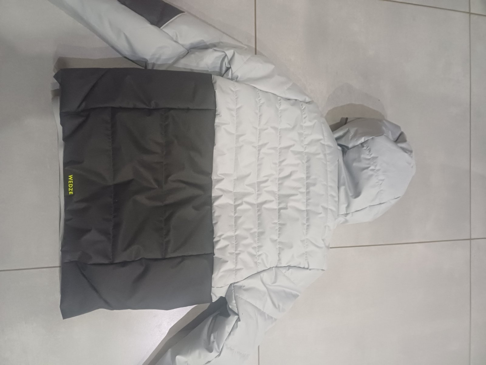 Predam UNI lyžiarsky kabat vhodný pre dievča , chlapca farba svetla siva kombinacii cierna top stav.