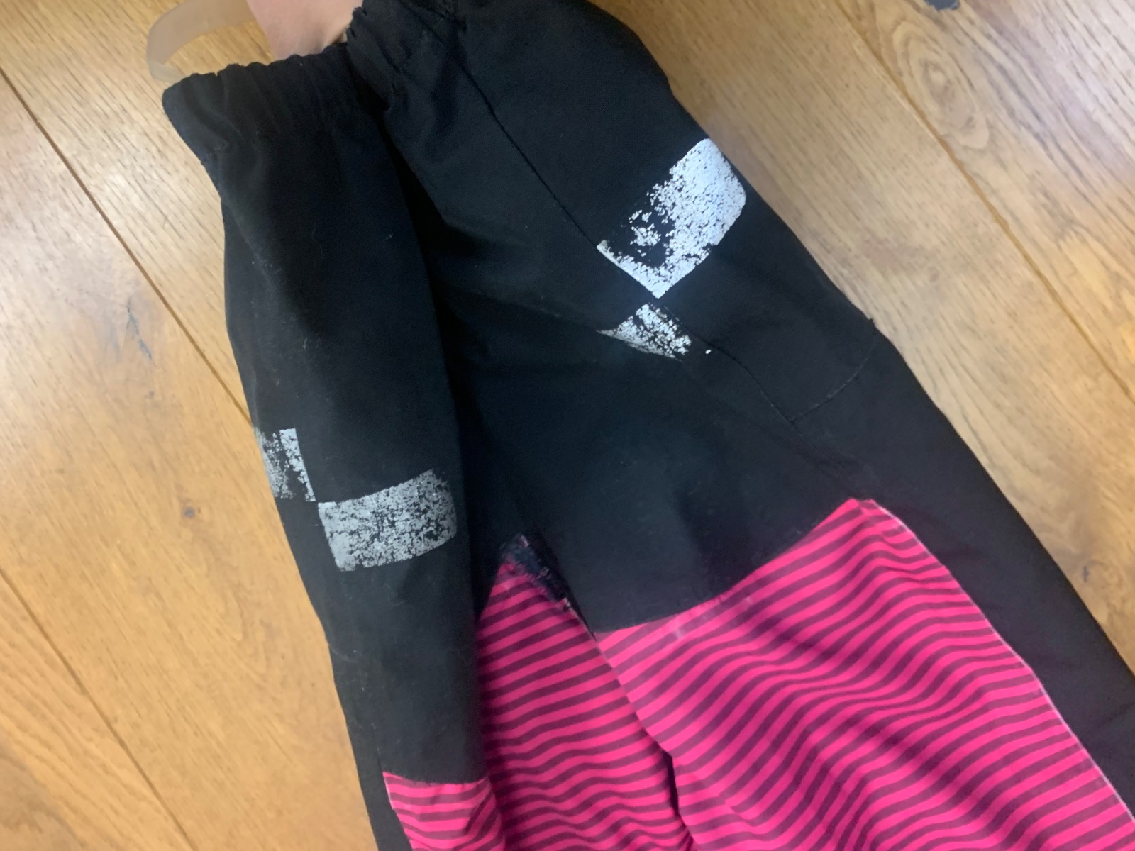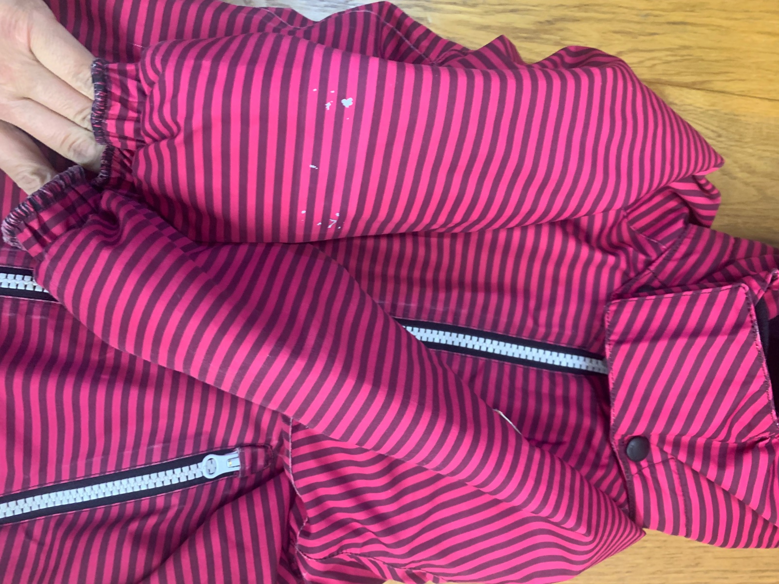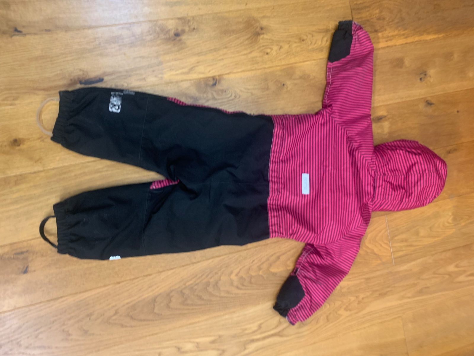 sedí na 104 a 110, Miery: celková dĺžka 92 cm, sirka 42 cm, rukav od kapuce 45 cm, VD rukav 29 cm, VD nohavice 41 cm