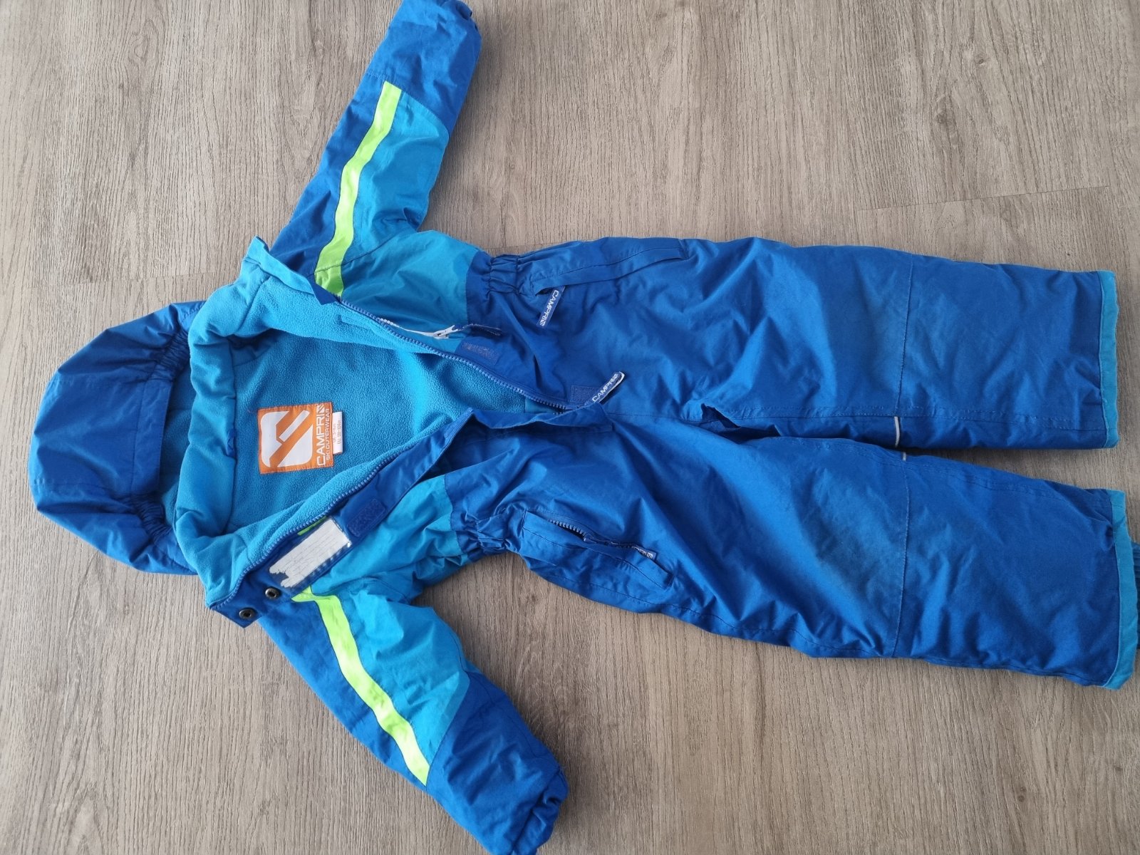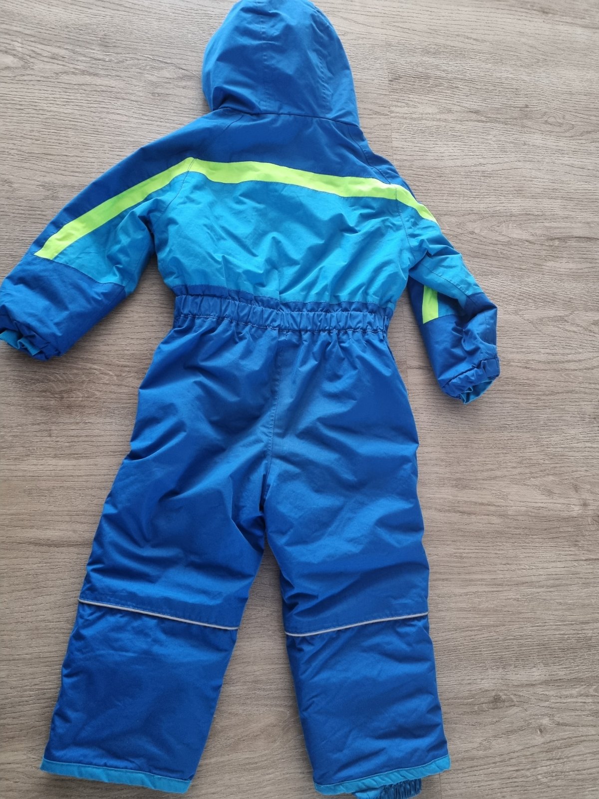 Detská kombinéza pre chlapcov, ktorá by bola vo veľmi dobrom stave, ale na konci zimy došlo k malému zachyteniu a má trošku zašitú časť na zadnej strane.