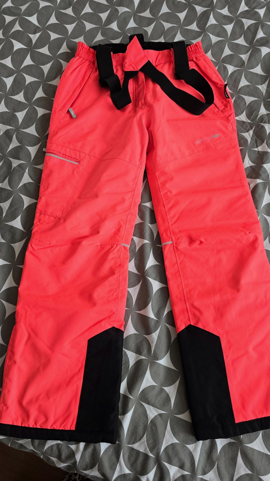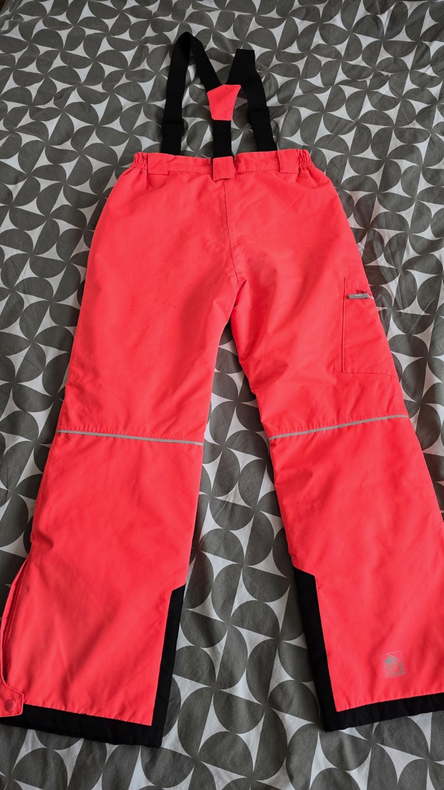 Kvalitné otepľovačky s trakmi North Ville, veľ. 146/152. Farba neónovo oranžová. S reflexnými prvkami. Voveodolnosť 3000 mm, vetruvzdorné, priedušnosť 3000. Mikro fliačiky a mini ošúchanie na zadnej časti, viď.foto inak v top stave. Dĺžka 94cm.