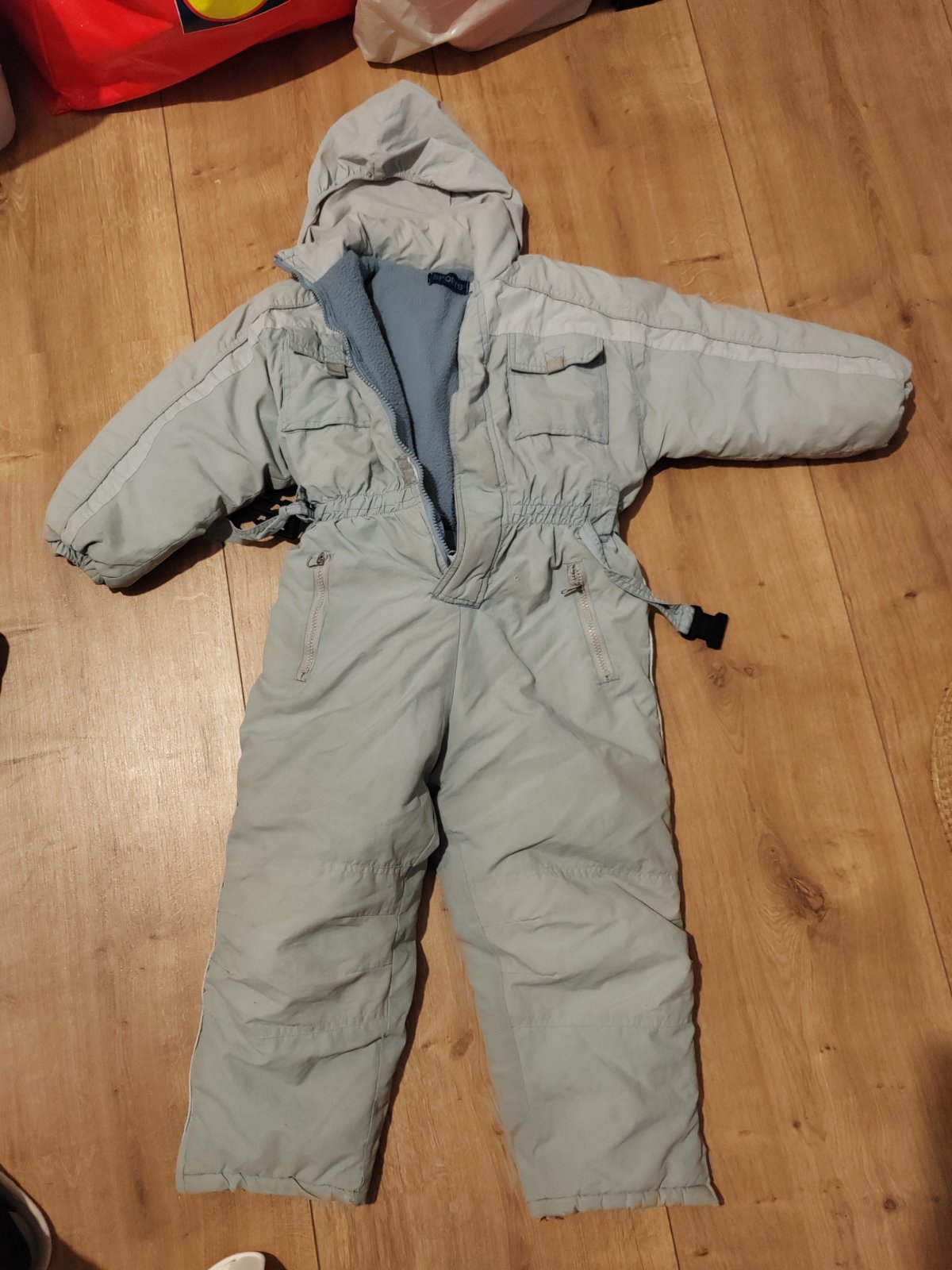 Pekná praktická kombinéza, trošku vyblednuta, ale na šantenie v snehu veľmi dobrá.