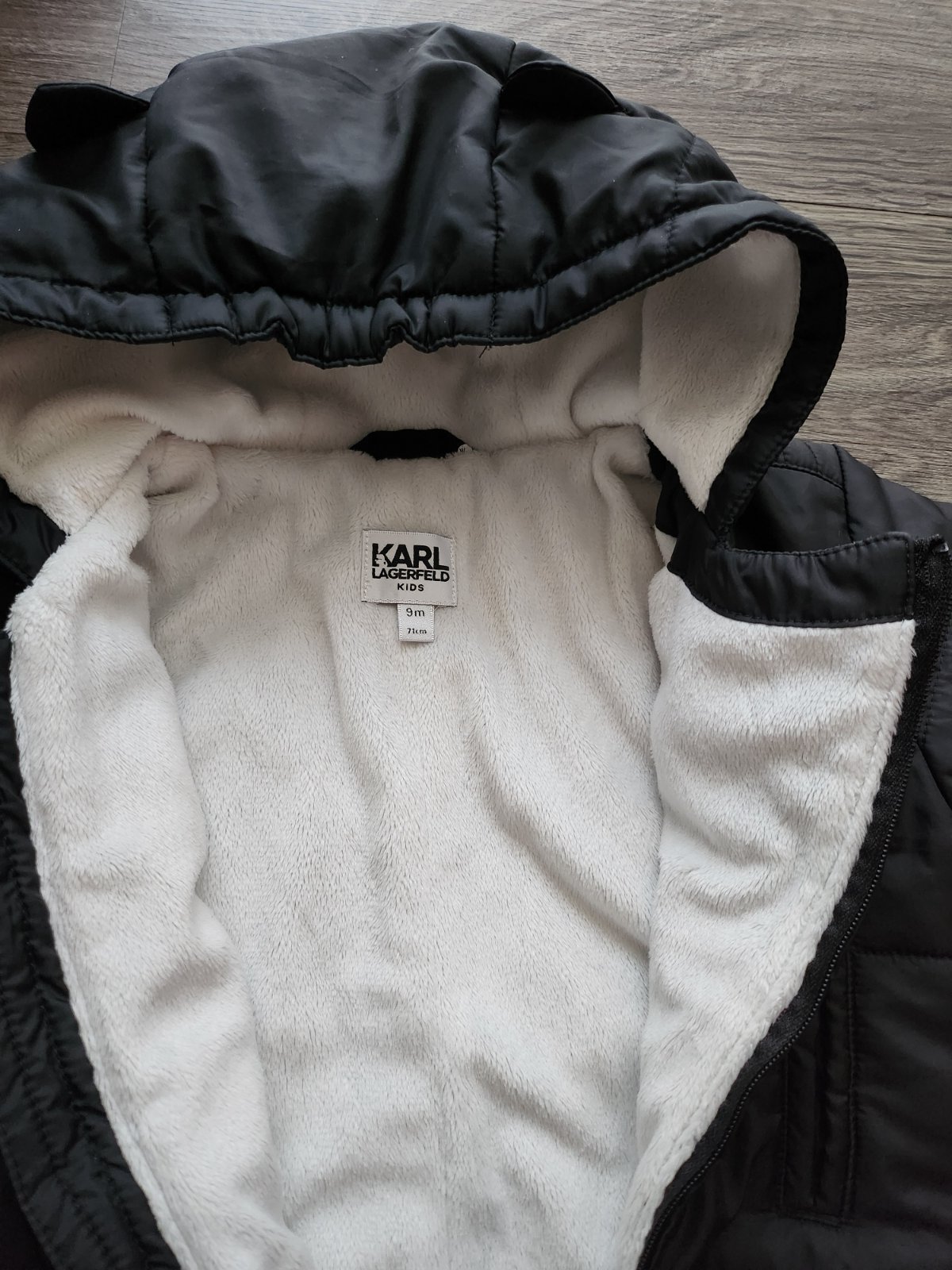 Na kapucni ušká, na ramene logo aj na zipse, je čierna,,, PC vysoka, vid foto na cen.ilustraciu. Velkost udava na 9mes, zalezi od velkosti dietata. Mam aj DKNY v inom inz.