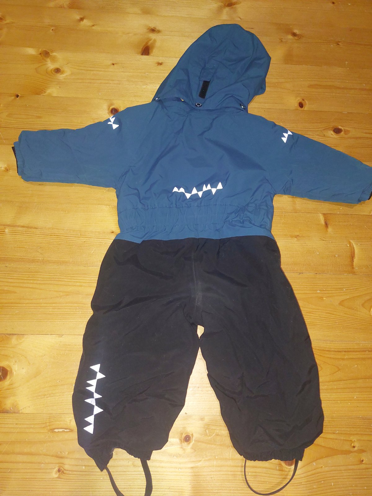 TOP rastuci overal pre maleho drobca do snieziku. Teplucky, nepremokavy, pohodlny. Na konci rukavov rukavniky, na nohaviciach dolu gumicky na topanky, reflexne prvky. Rukavy i nohavice sa daju predlzit povolenim tych farebnych svov zvnutra, vid foto. My sme to nevyuzili. Overal je v top stave, malo noseny, mali sme ho len par krat v cistom snehu. Do nasej zimy, teda do blata sme mali iny😉 Farba je taka tyrkysovomodra.