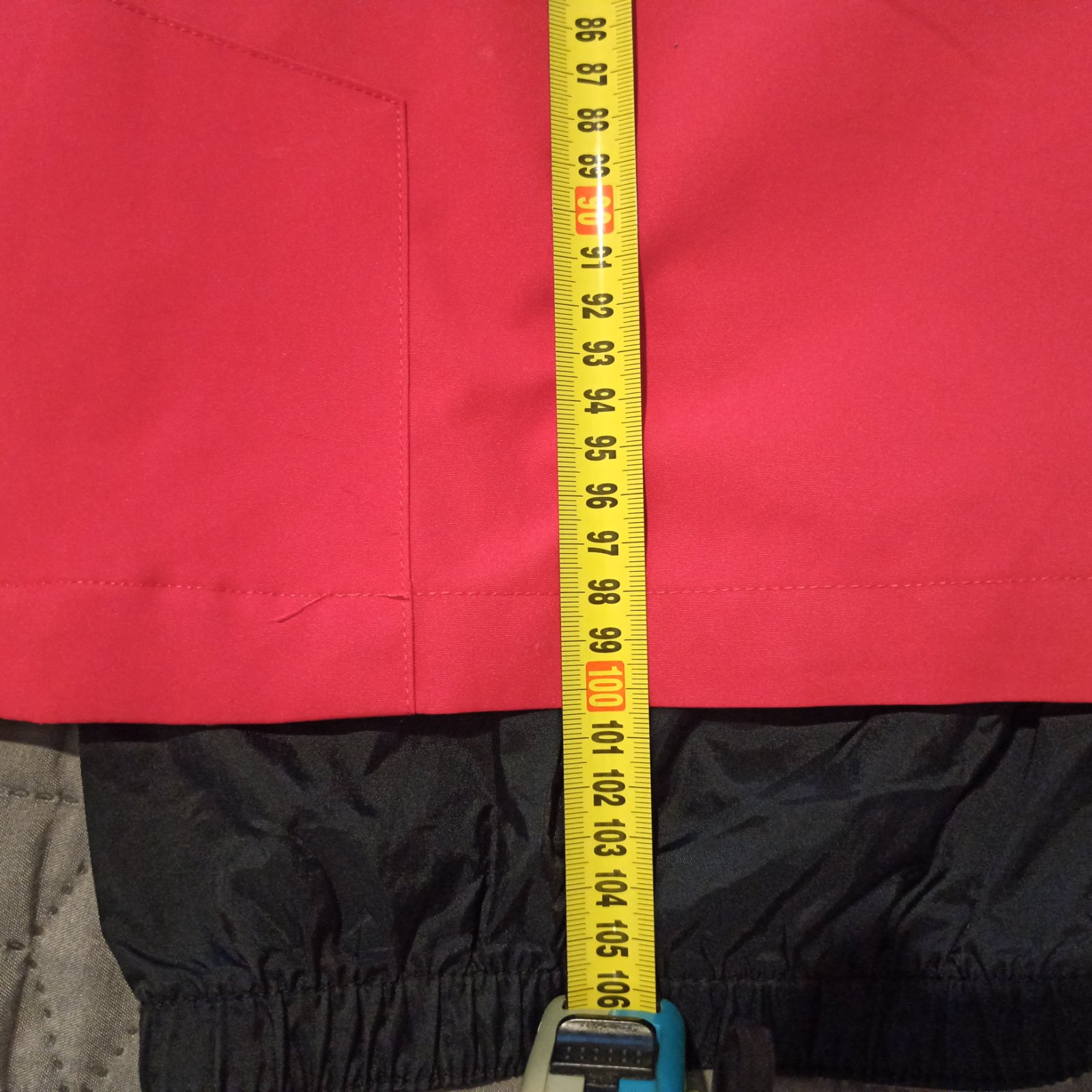 Je bez vady, u nás len v skrini stojí, asi 2x oblečené, dĺžka od ramena 70 cm, pekná ostrá farba.
