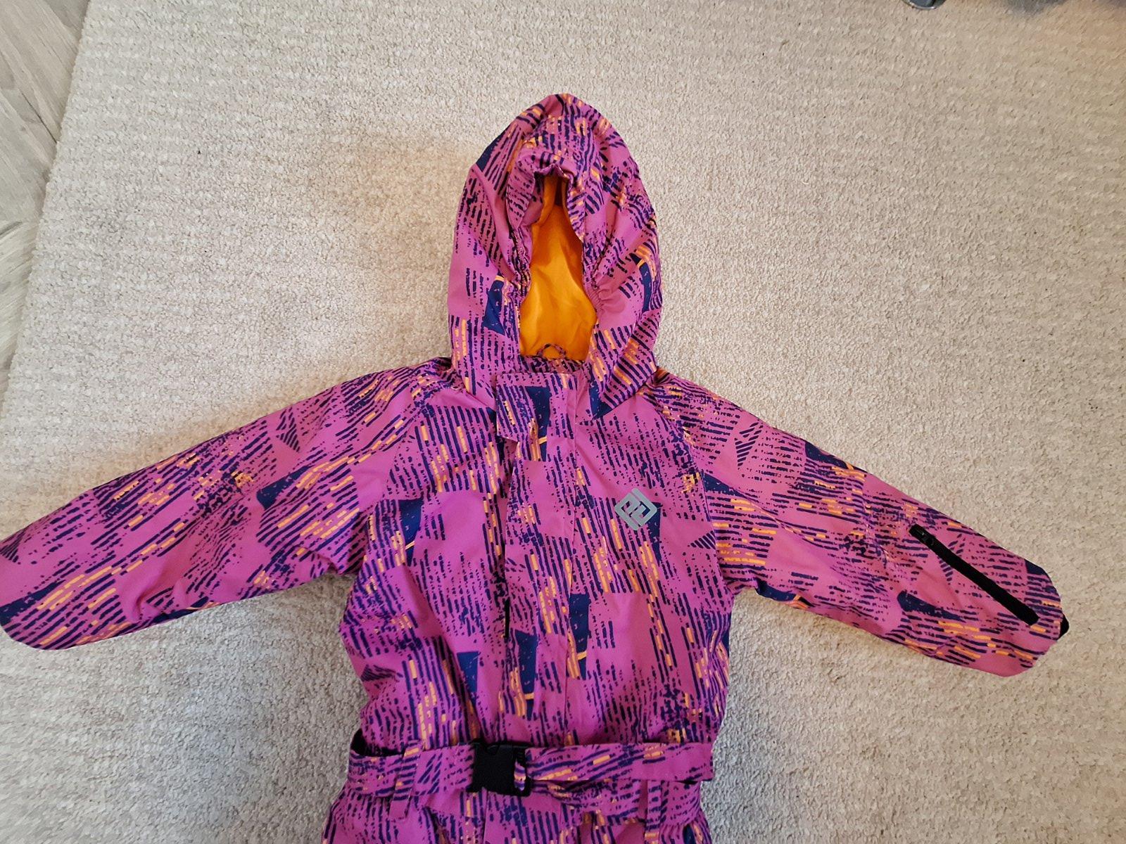 Krásna kombinéza v super stave. Len jedna chybička na jednej nohavici trošku rozthnuta ale zasijem na stroji. Vodný stĺpec 5000. Nikdy nám nepremokla. Maximálna spokojnosť,