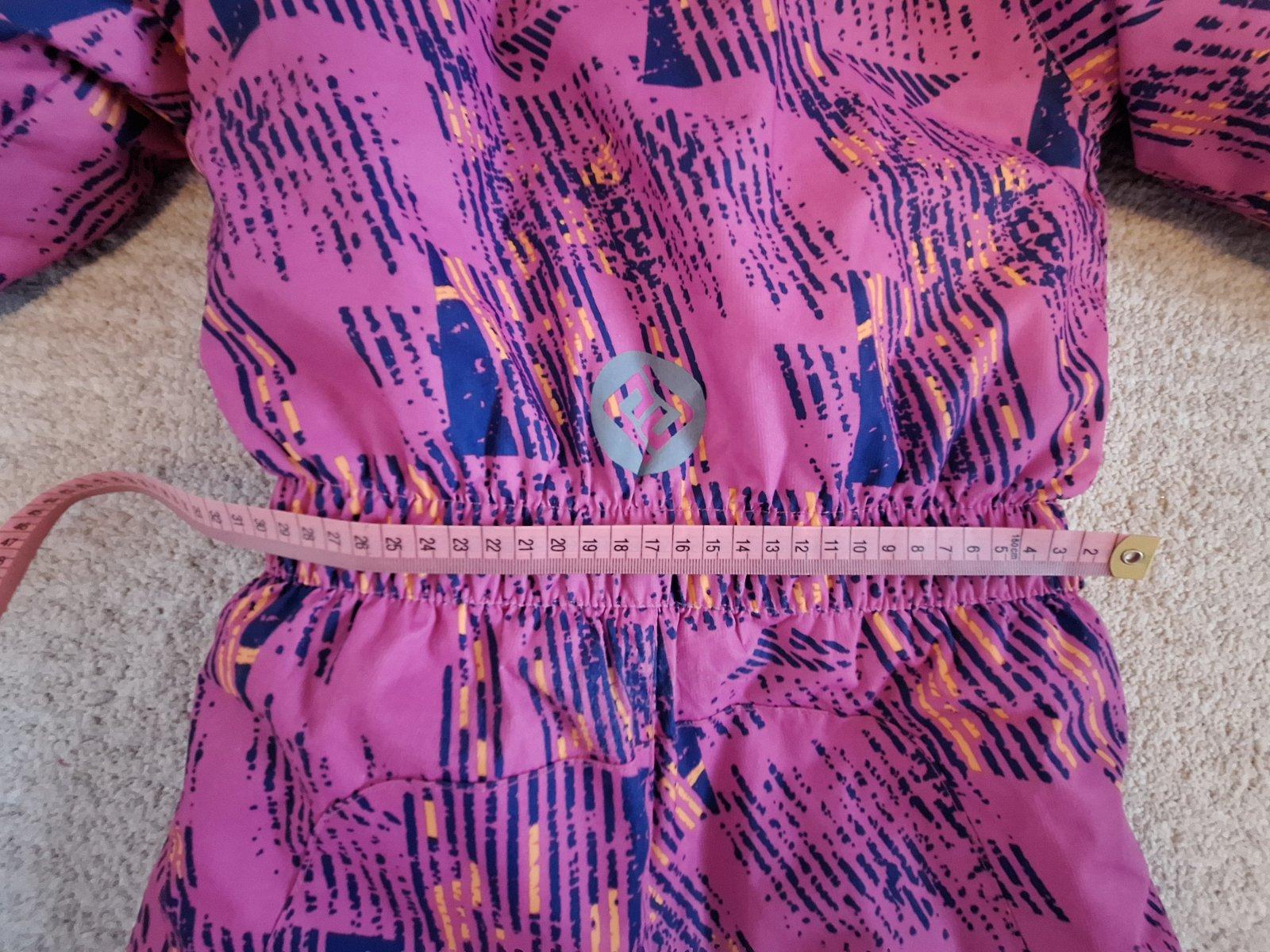 Krásna kombinéza, žiadne poškodenia. Celková dĺžka 99cm, pás v kľude 29cm, nohavica od rozkroku 44cm, od pása 65cm, rukáv od kapucne 48 cm.