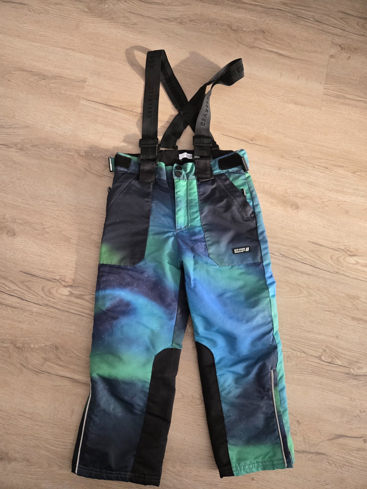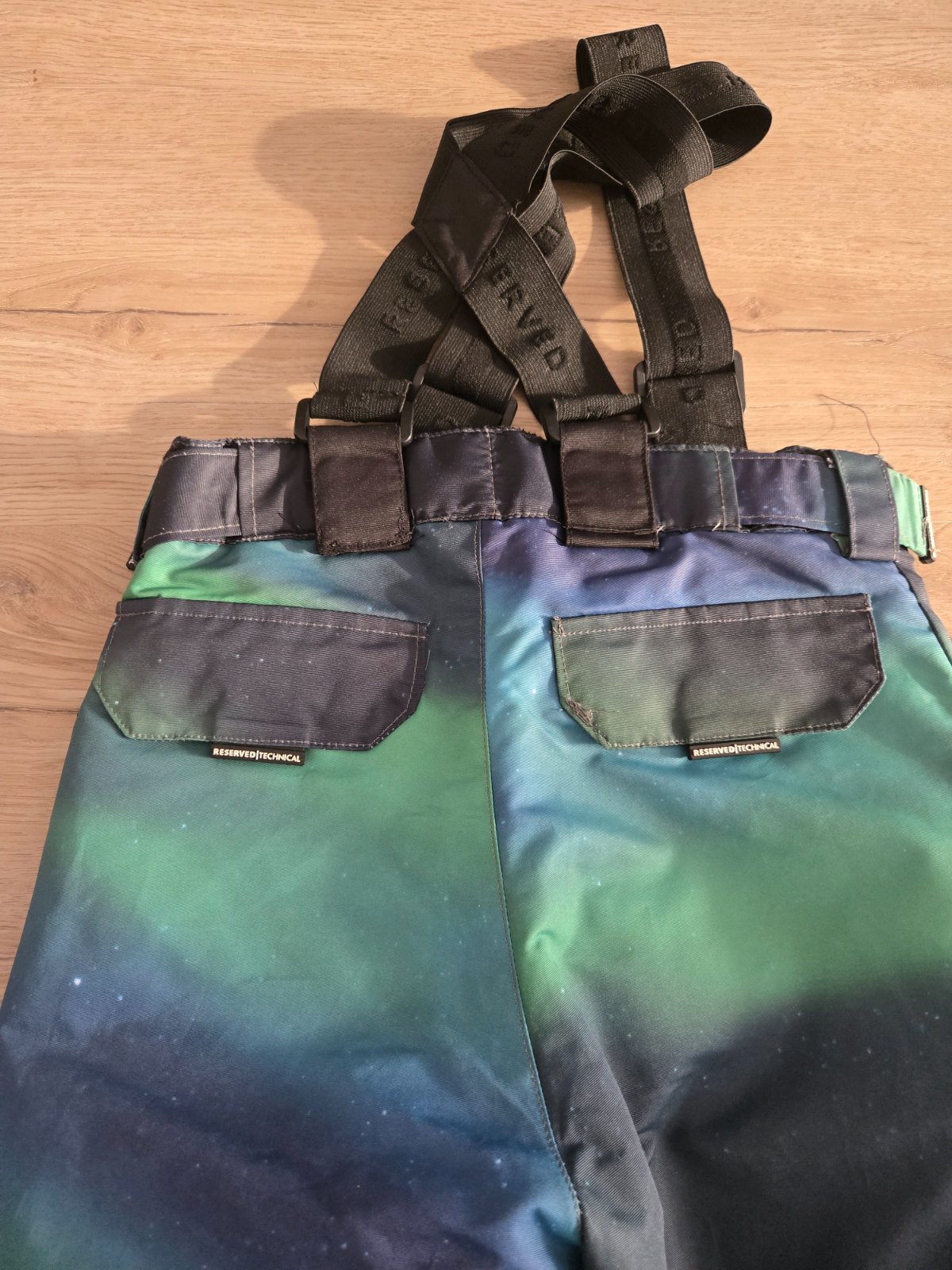Otepľovaky, lyžiarske nohavice Reserved Majú nastaviteľné traky, dve predné vrecká, zadné vrecká s klopou, farebná celoplošná potlač, nepremokavé s reflexnými prvkami. V ponuke veľkosť 116, 146, 1...