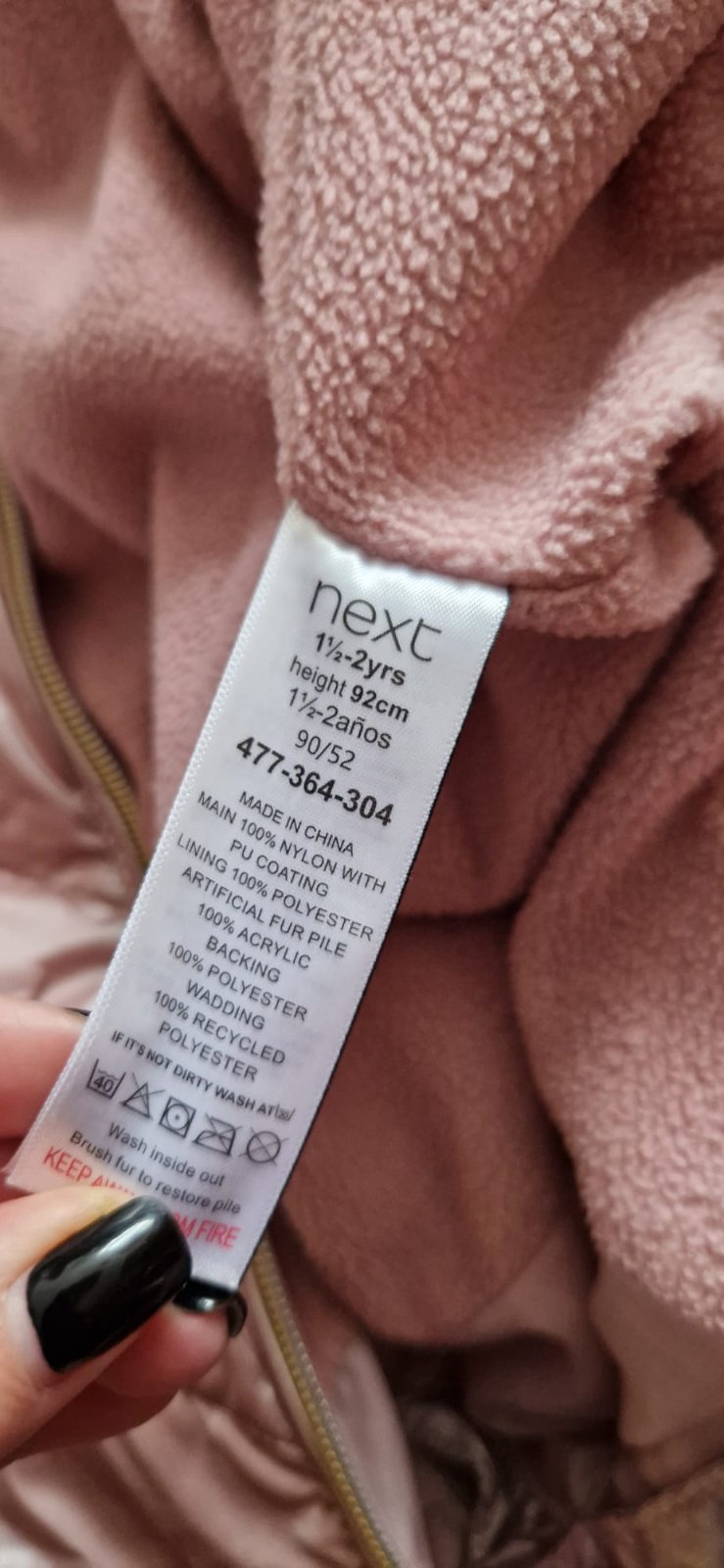 Kombinéza - overal, celý podšitý teplou flísovou podšívkou v nosenom stave už vidieť na koncoch rukávov, pri zipse som našla malý fliačik (možno pôjde vyprať, neskúšala som). Stav zohľadnený v cene.