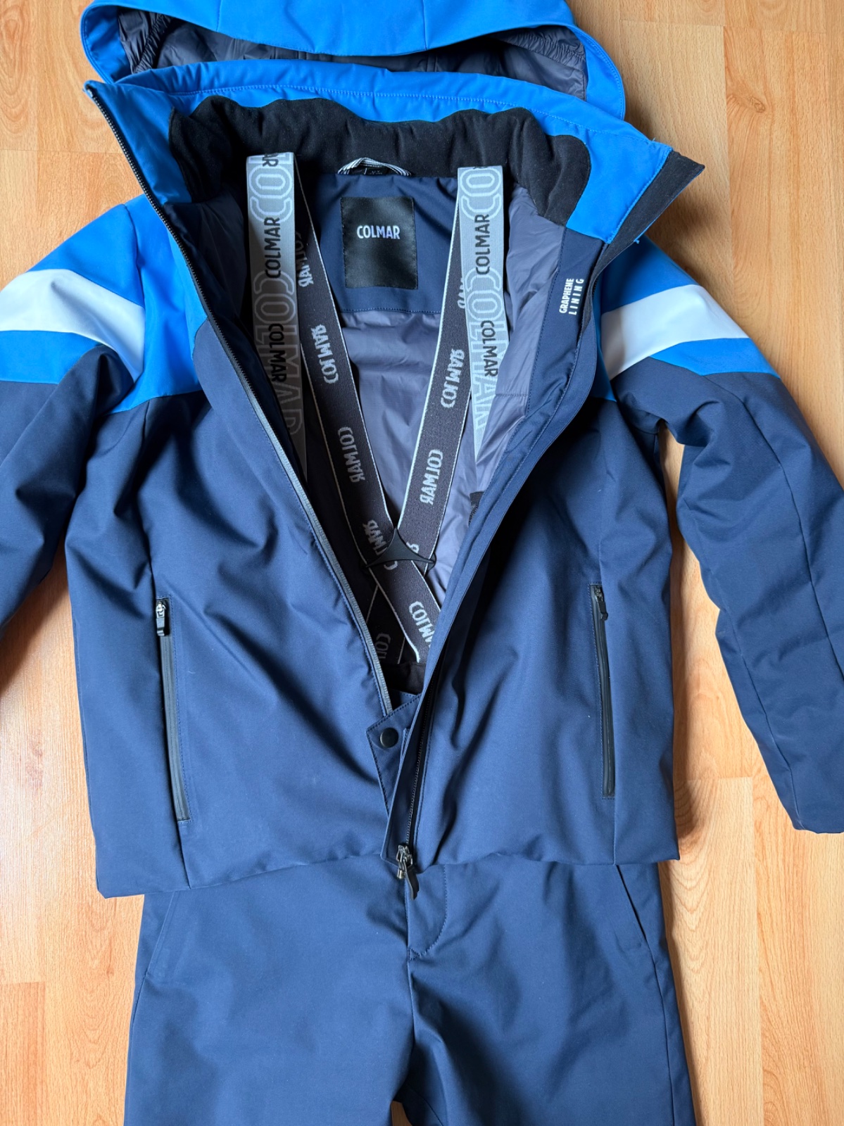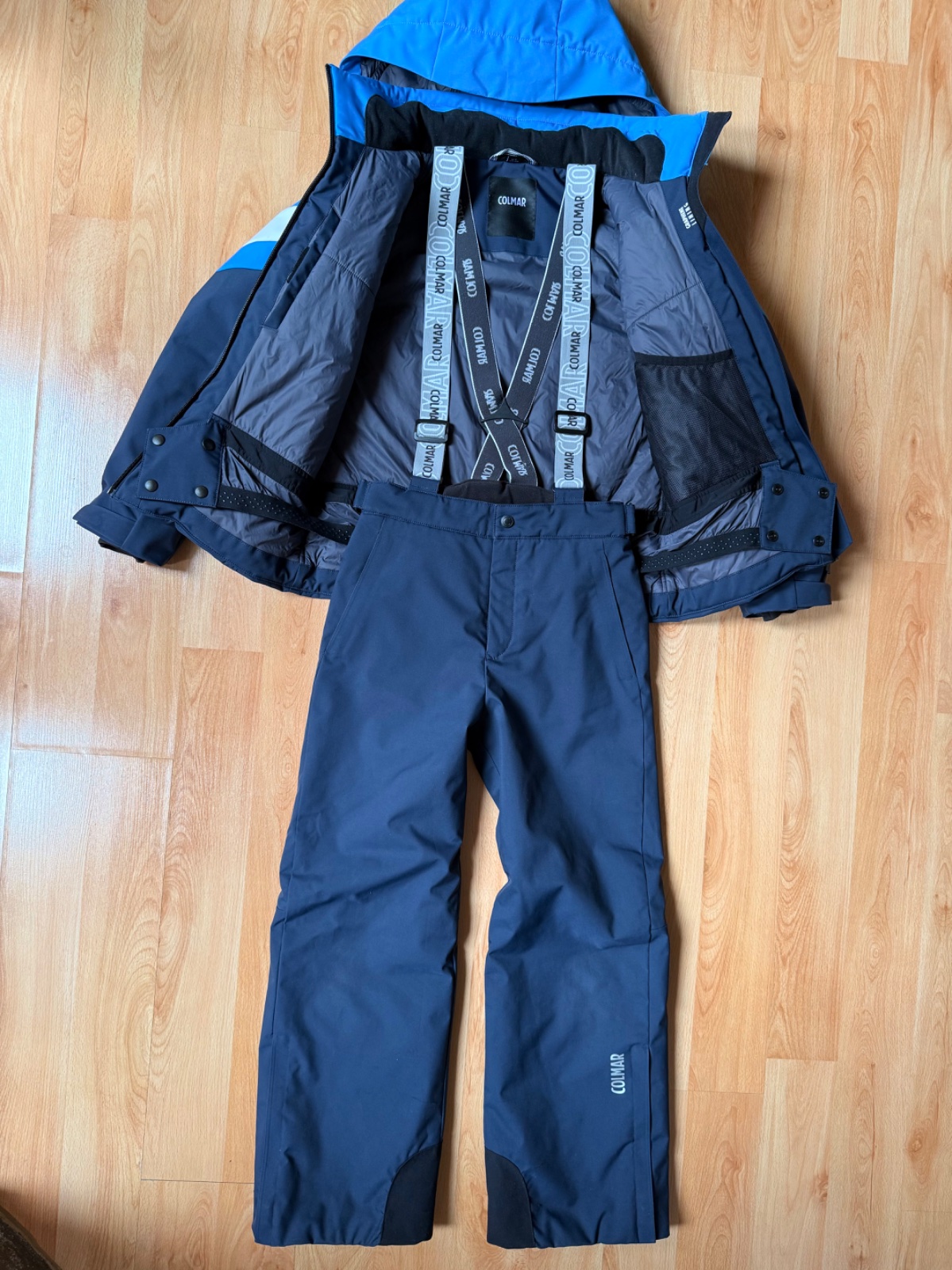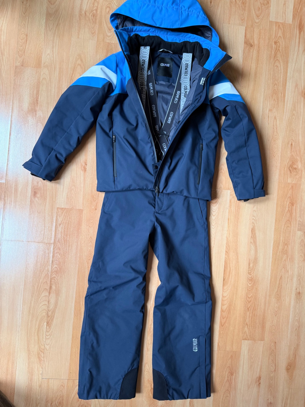 Krásna súprava, nosená jednu lyžovačku, bunda top stav a nohavice (viď foto) na spodku od lyžiarok poškodené, ale nie je to vidno pri nosení Veľkosť na 12 rokov- 154cm