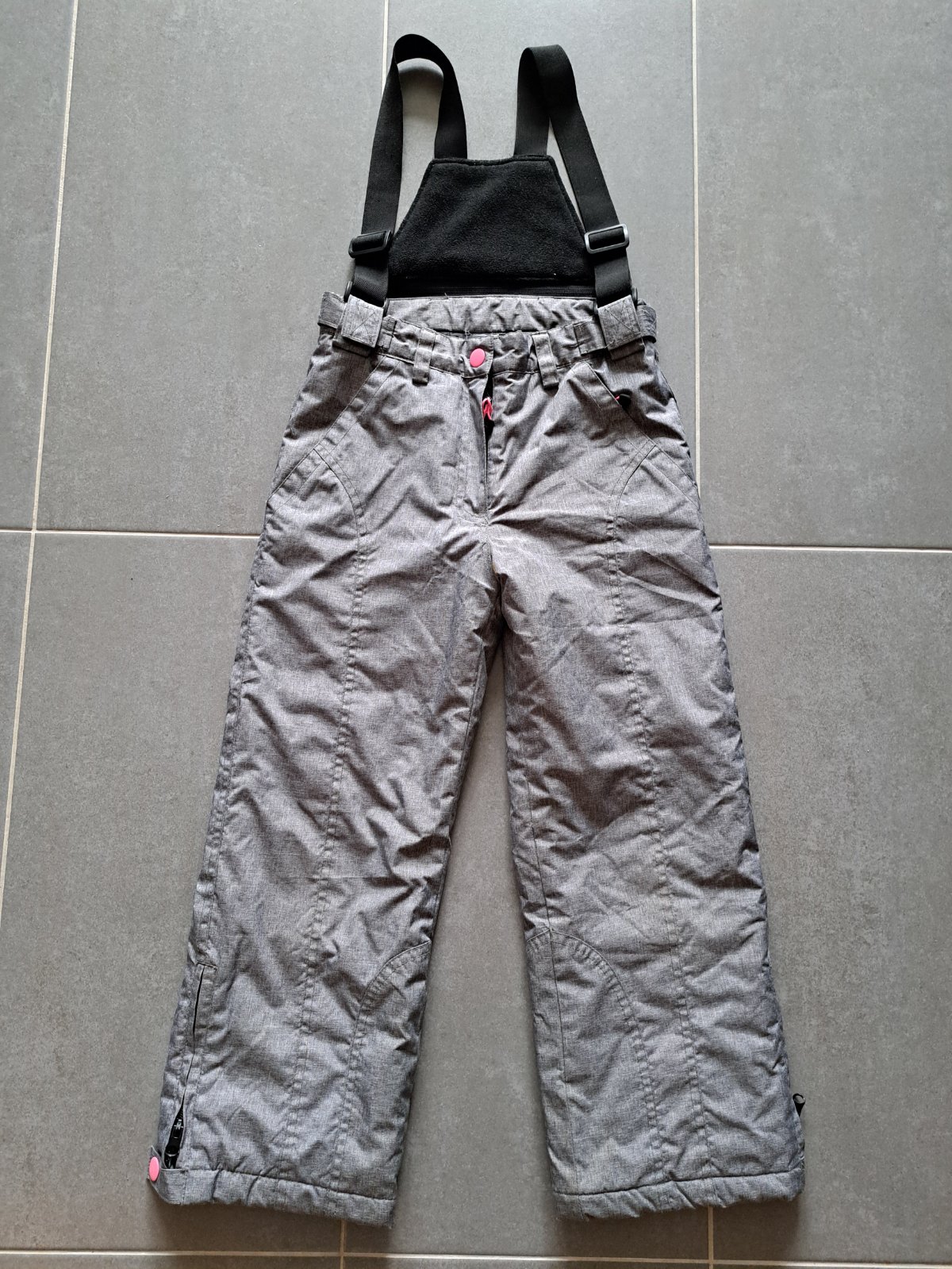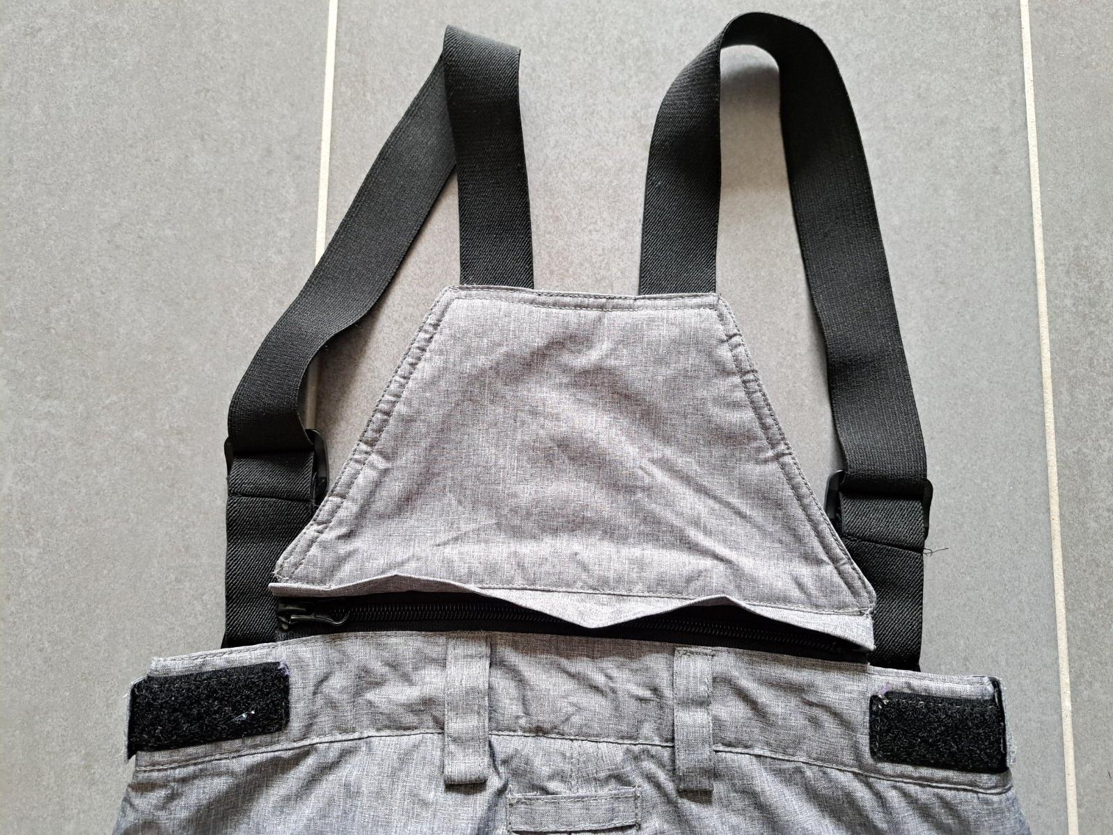Krásne otepľovačky bez poškodení, veľkosť cca 134. Šírka v páse 2x35cm, dĺžka na fotkách. V páse sú stiahnuté né suchým zipsom, chrbtový diel s trakmi sa dá odzipsovať.