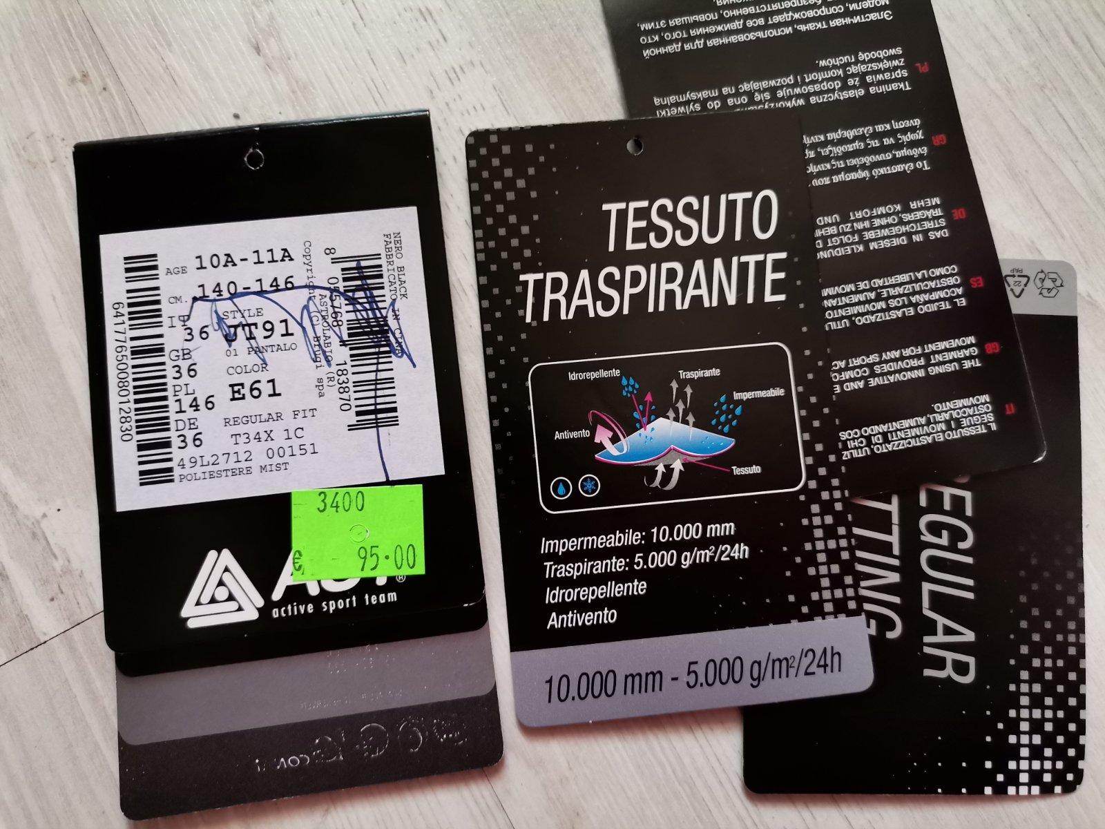 Veľkosť na stitku 140/146. Dĺžka nohavíc bez trakov je 89 cm.