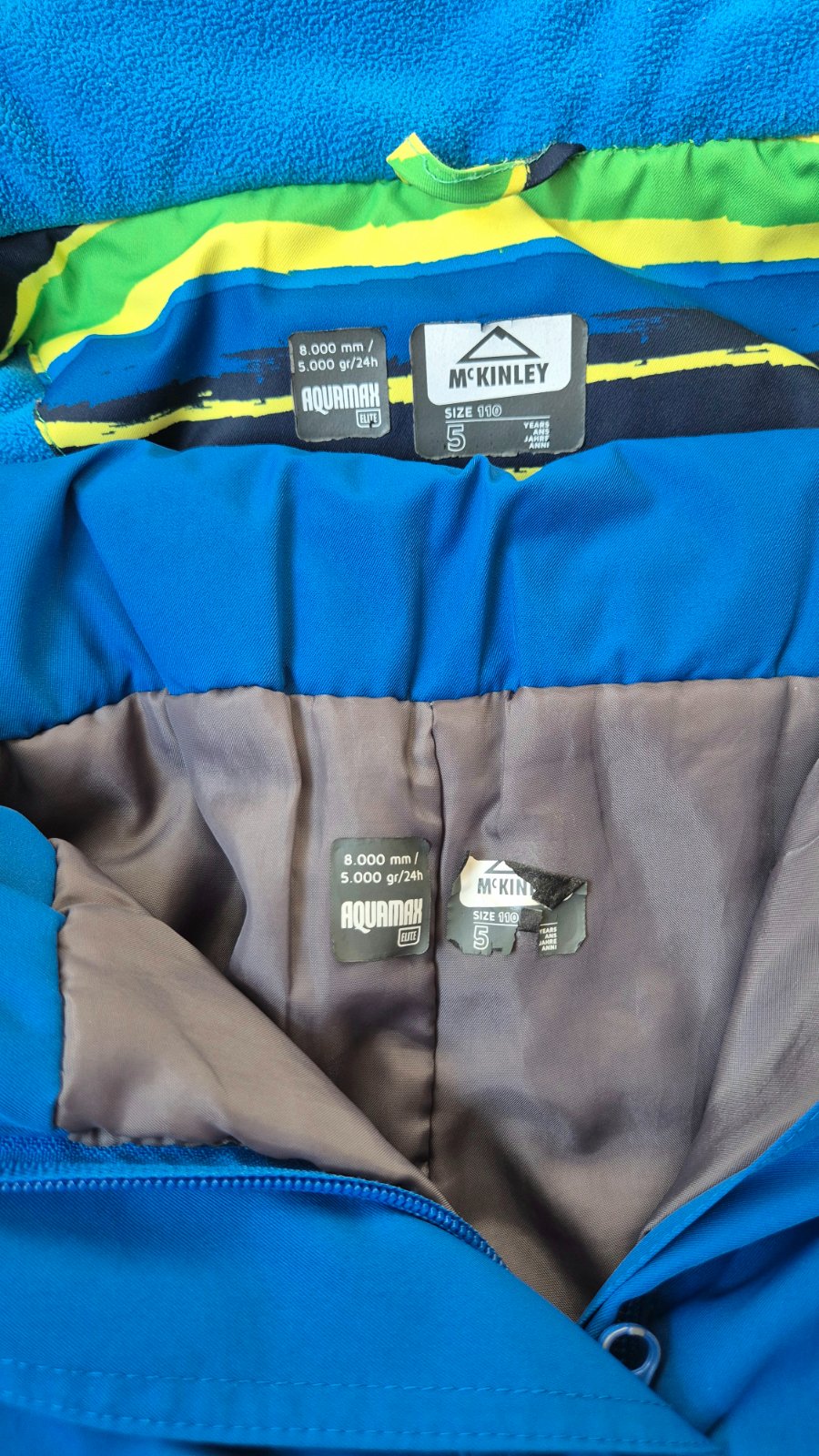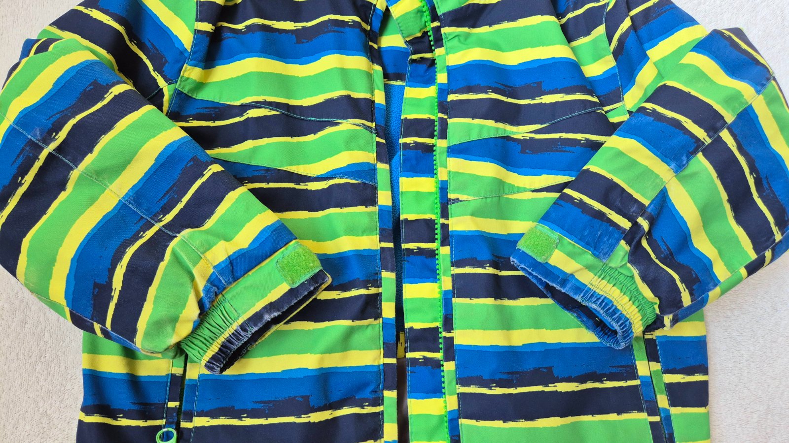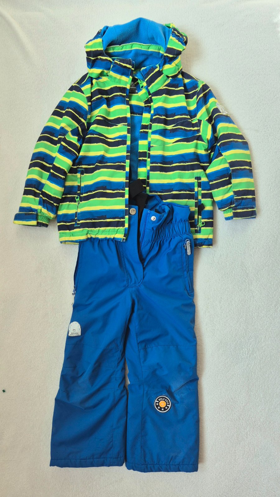 Nosená 2 sezóny v do škôlky aj na ľadové korčuľovanie, čo uz na nej vidno, zohľadnené v cene. Súprava je plné funkčná.