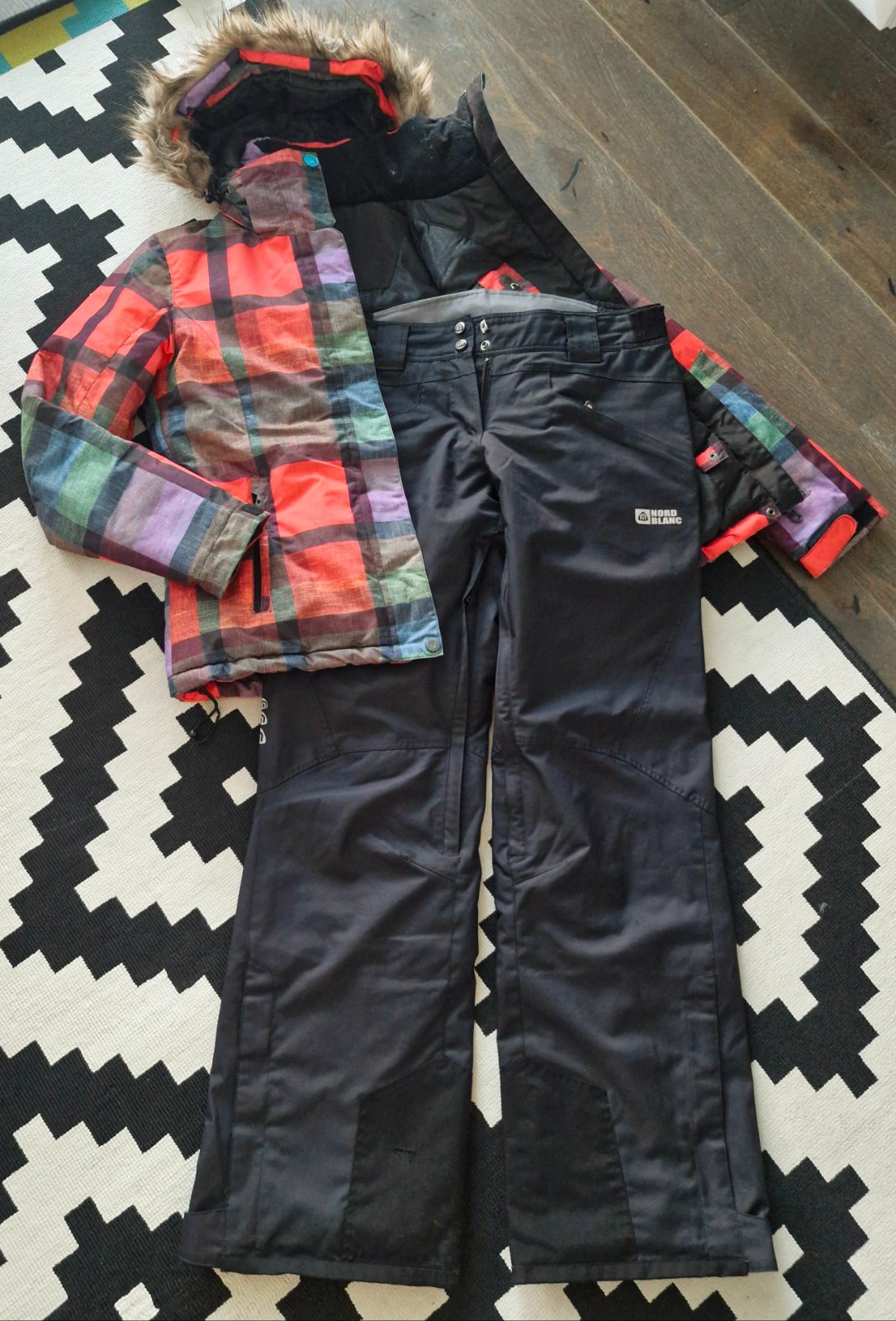 Bunda top stav,nohavice jemne znamky pouzivania naspodu,pri noseni absolutne nevidno,cena spolu LEN 75eur,velmi odporucam,vhodne pre dievca aj zenu.