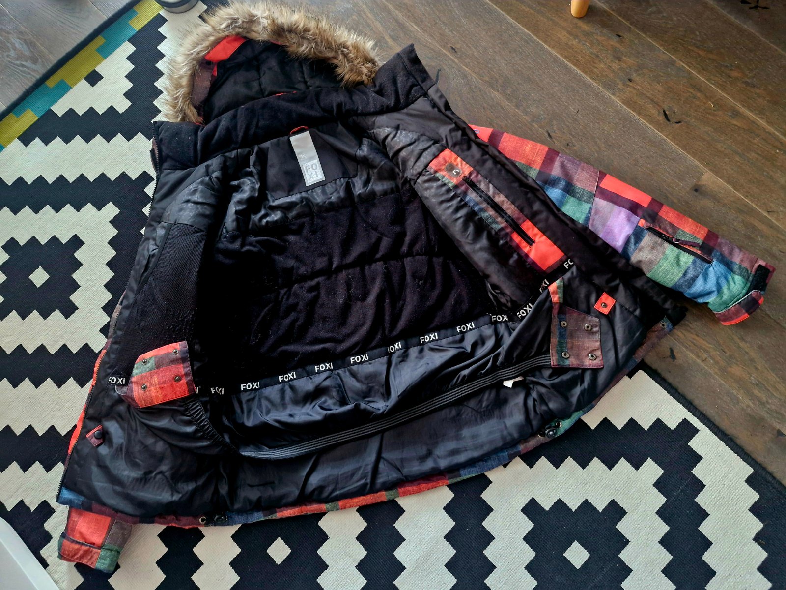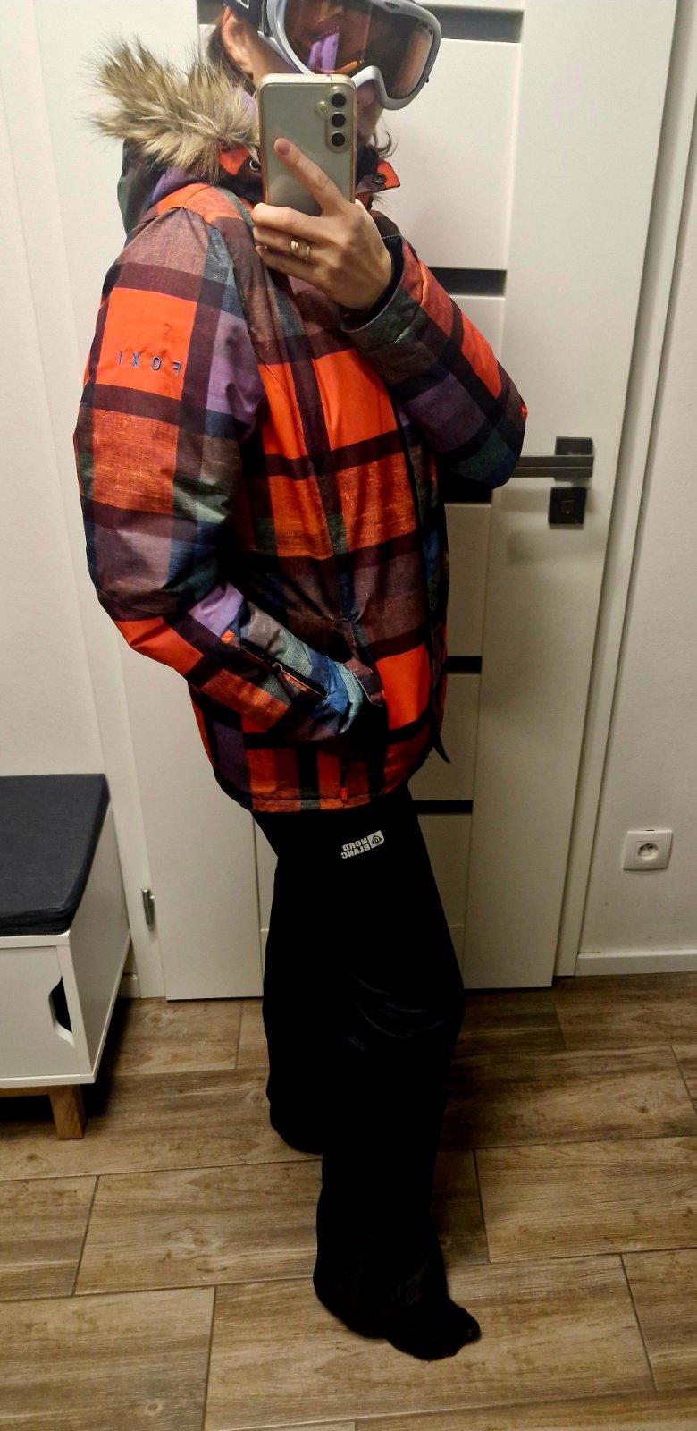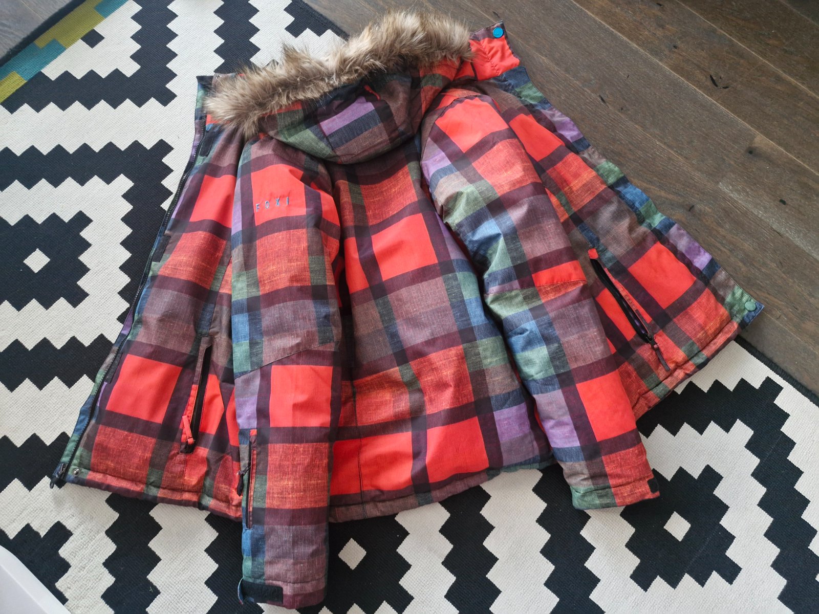 Krasna kvalitna farebna lyziarska bunda zn.Foxi s kozusinkou v.M/L,super stav,bez poskodenia,lyziarsky pas,vrecko na skipass na rukave,kapucna aj kozusinka odnimatelna,prepracovana,pod pazuchami zipsy so sietkami s moznostou odvetrania,vodny stlpec az 15.000mm,k tomu skvele moderne kvalitne lyziarske nohavice premiovej zn.Nordblanc,vodny stlpec 10.000mm, v.S,zodpoveda S/M.