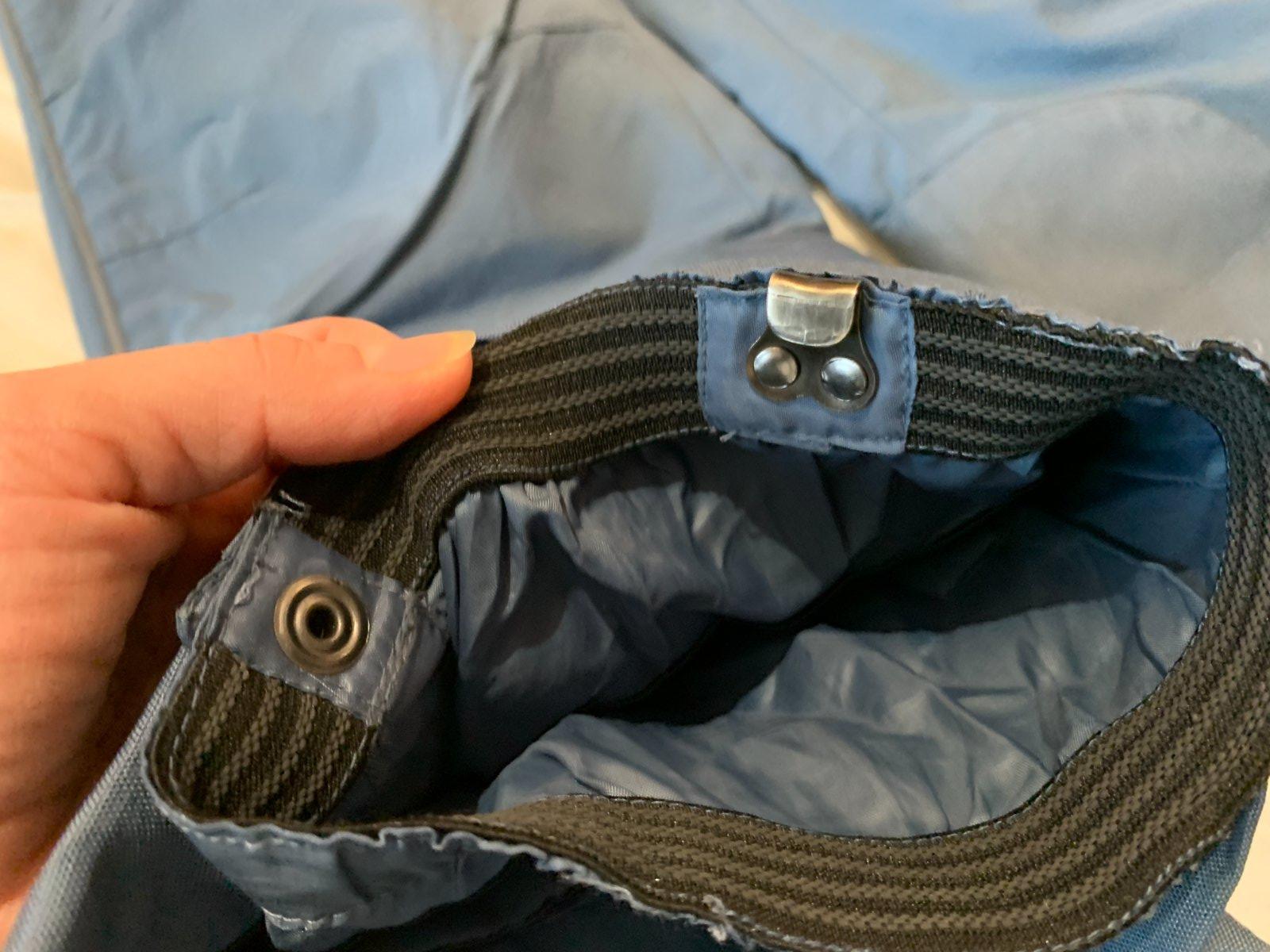 Veľmi dobrý stav, len na jednej nohavici uvolnená jedna patentka pri tom háčiku...ale mi sme ani nepoužívali. Veľkosť uvedená 152, ale sú menšie...sedia skôr na 146.
