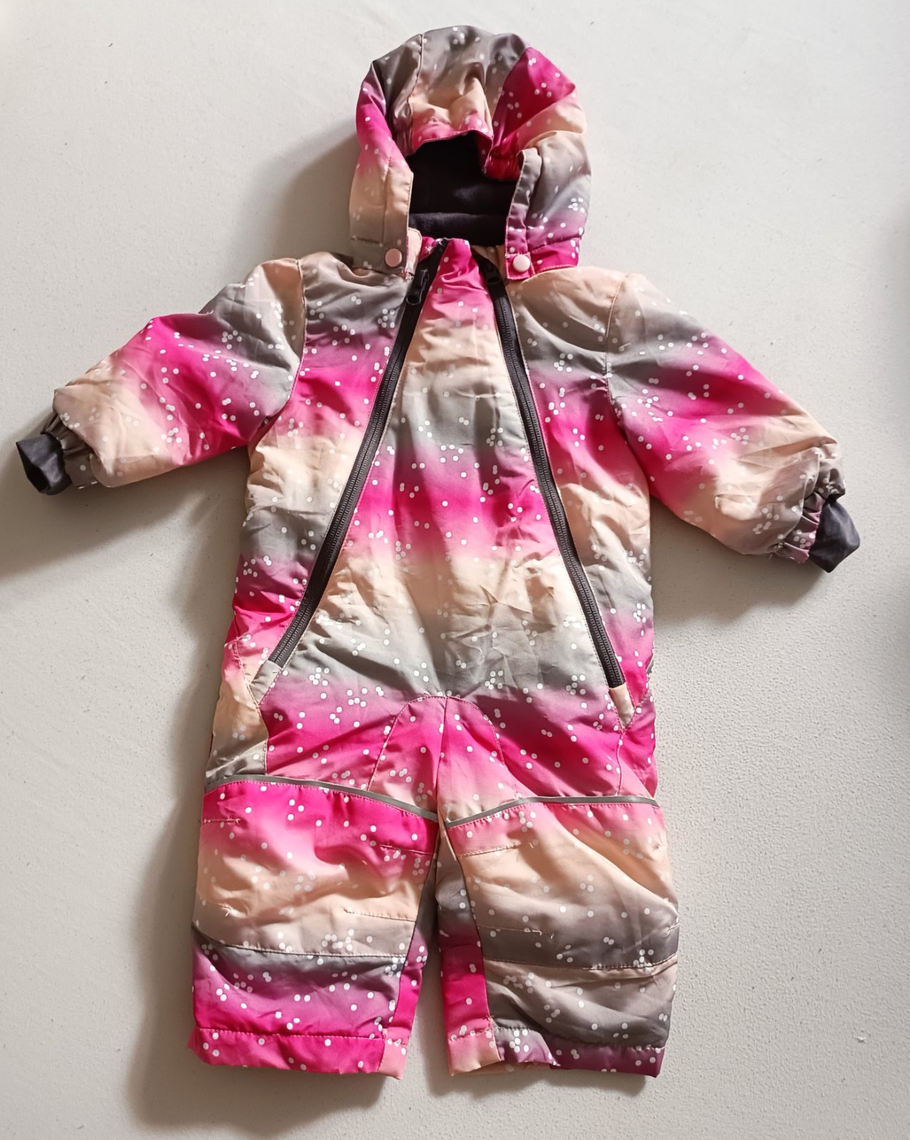 Detský dievčenský overal na zimu, nôžky voľné ale zo spodu guma, kapucňa odnímateľná, veľkosť 62/68, značka Lupilu, materiál polyester, k cene je potrebné prirátať poštovné podľa aktuálneho cennika
