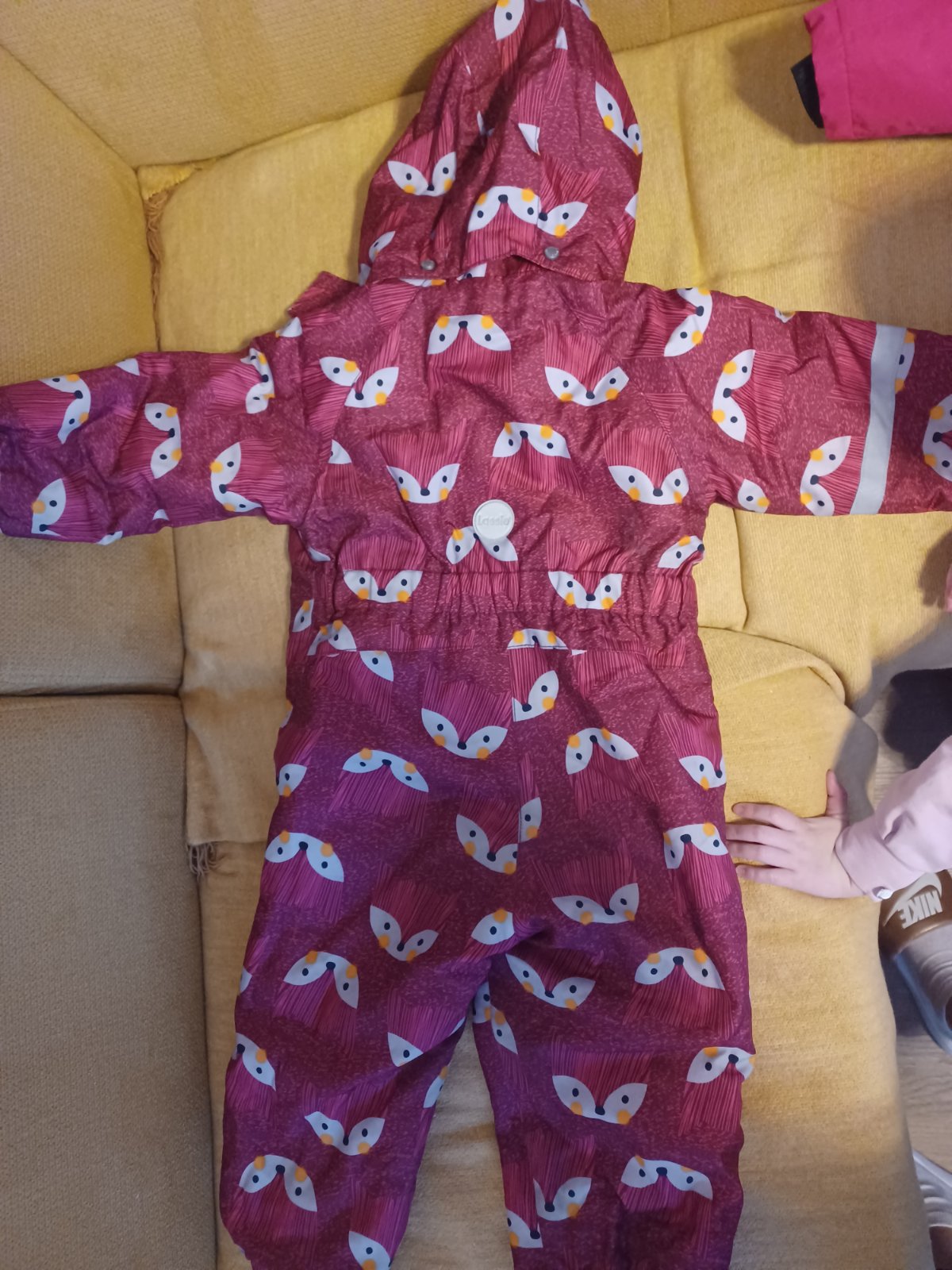 Reima overal,velkost urcite 98 a mensie deti aj 104 ponosia, nedostatky nafotene, daju sa dorobit gumicky na spodok,aby sa nohavice nevytahovali,ale nie je to potrebne,dlzka 78 cm