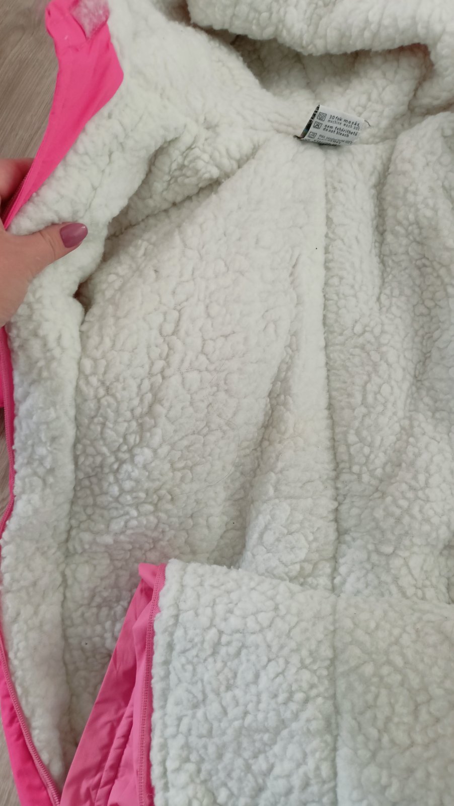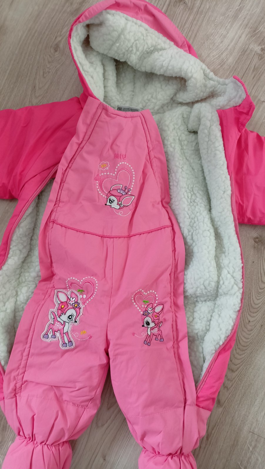 Kombineza bola asi raz oblecena. Mega teplucka, cela je podsita akoby ovcou vlnou. Cele rukavy su nou podsite, tak isto aj nozky ktore su plné.
