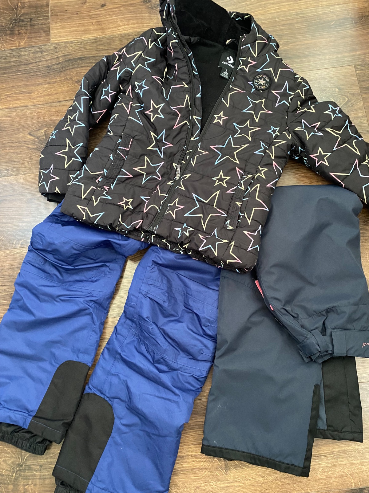 Suprava na zimu, bunda s oteplovackami velkost 146-152cm, zateplene nohavice gratis. Bez poskodeni.