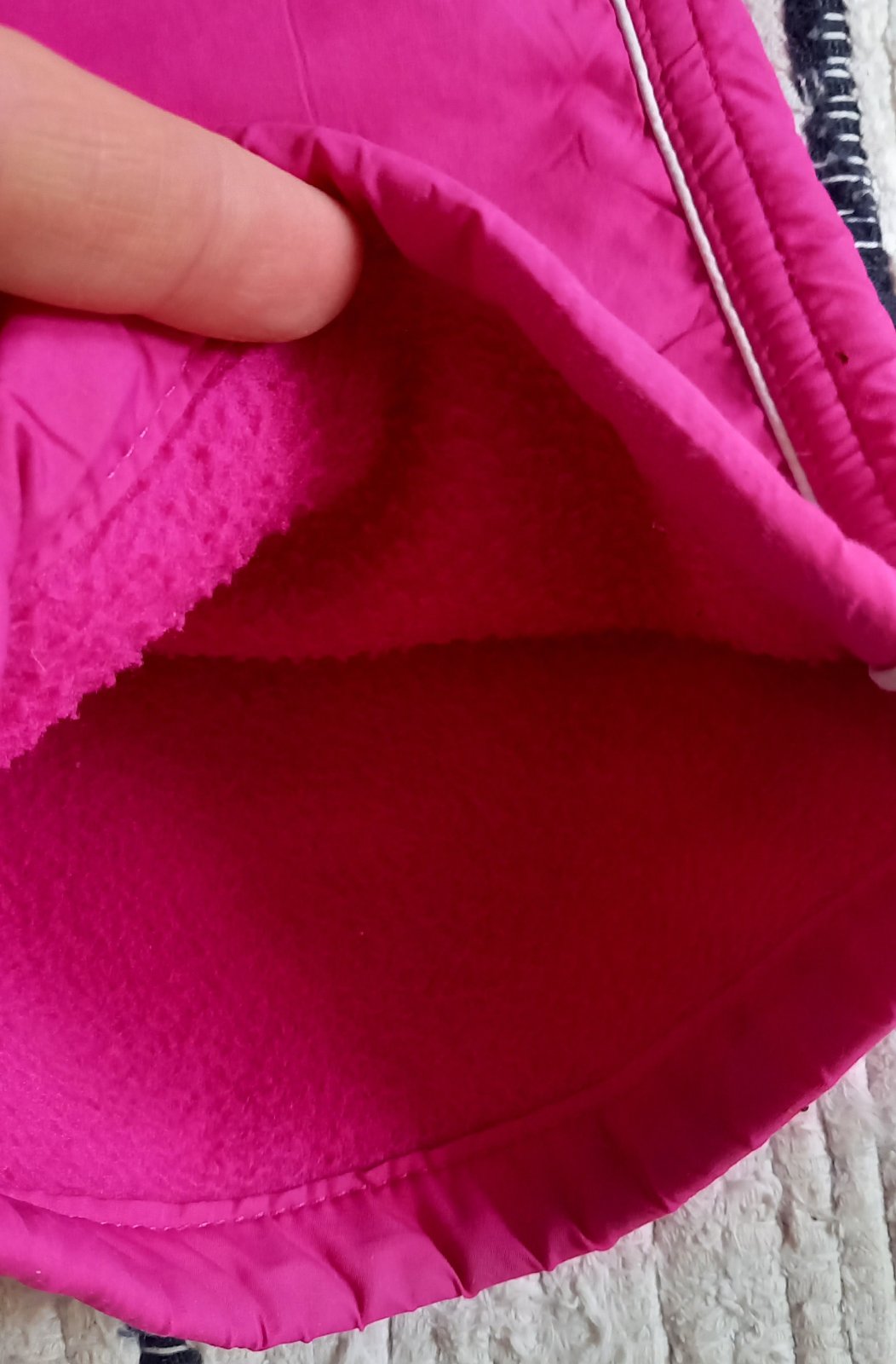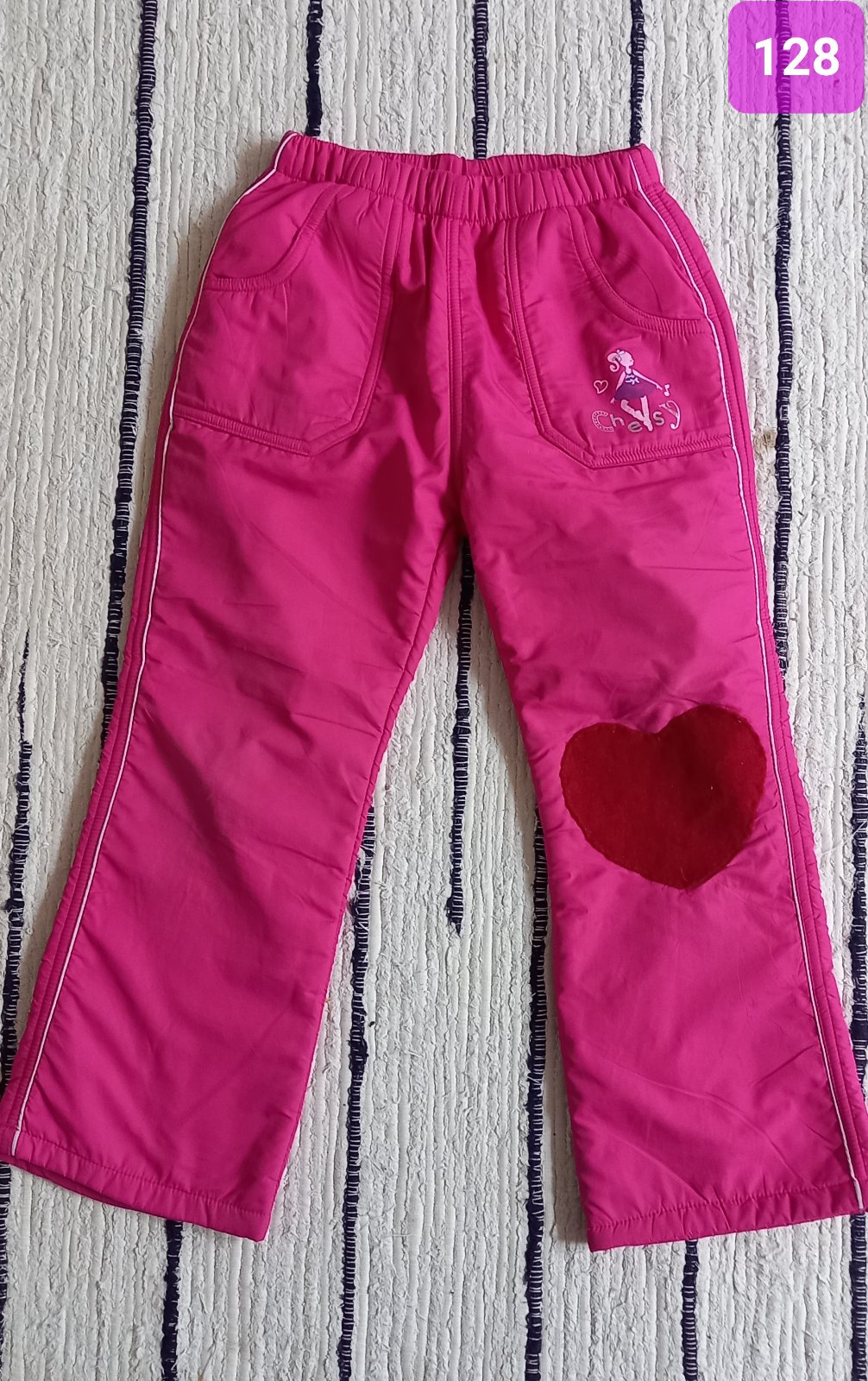 Oteplovacky, c.128, na jednom kolene záplata. Podsite flisom