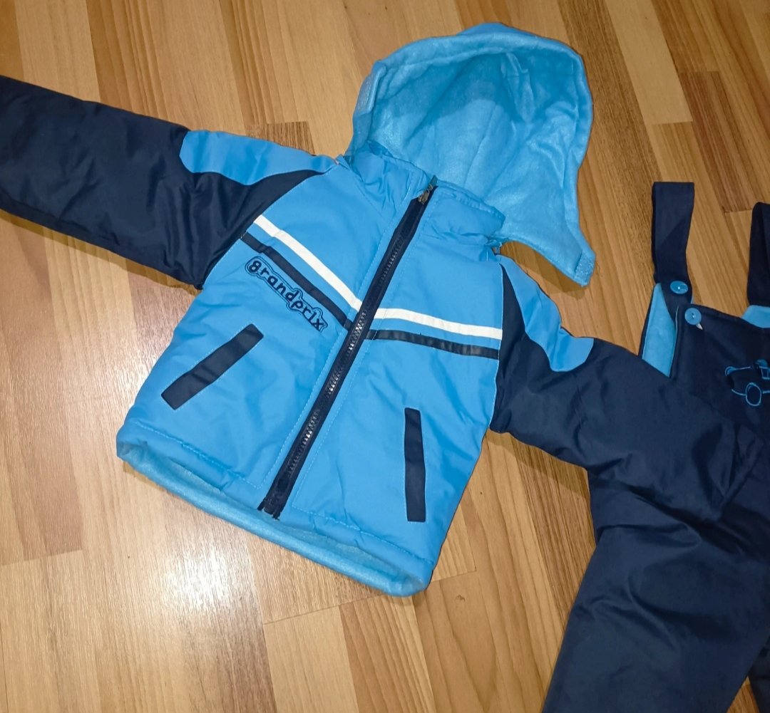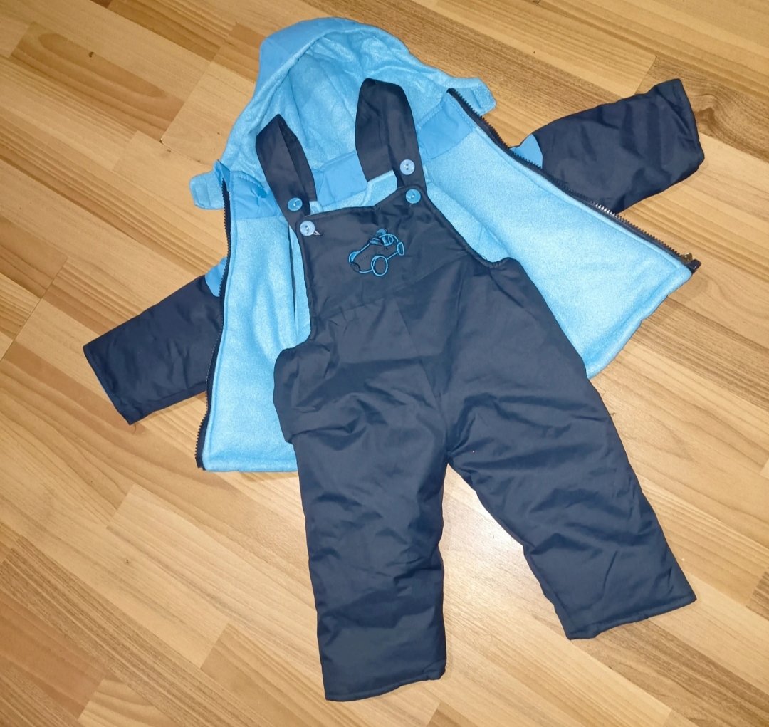 Predám teplú zimnú súpravu pre chlapčeka. Set pozostáva z oteplených nohavíc na traky a z bundy s kapucňou.