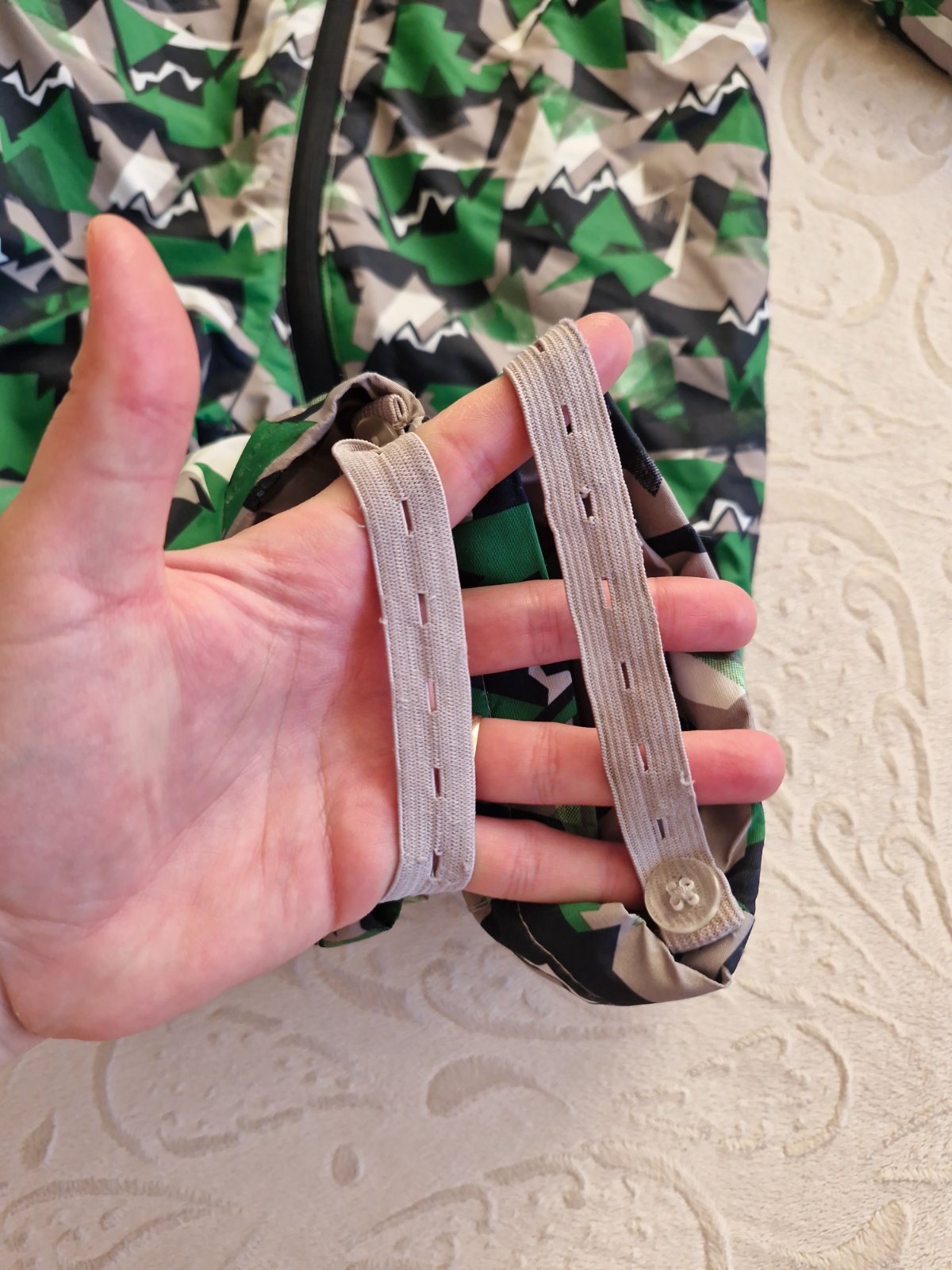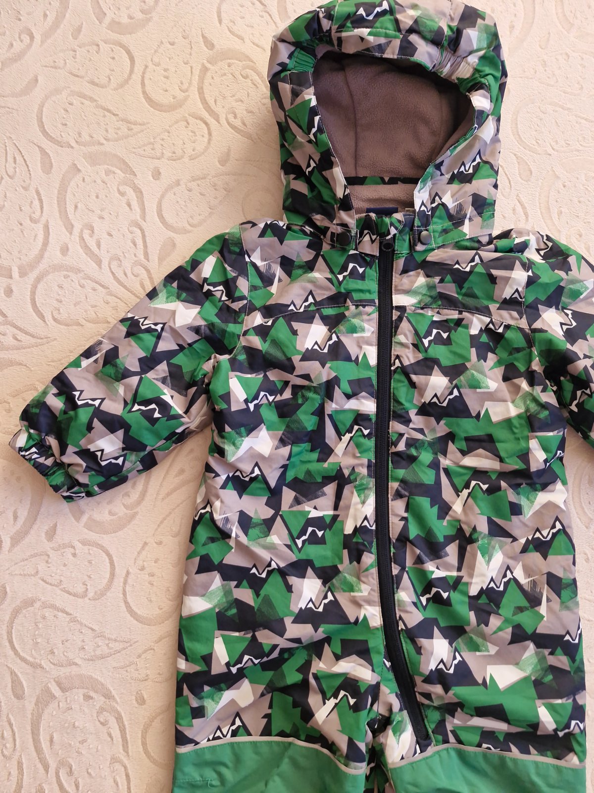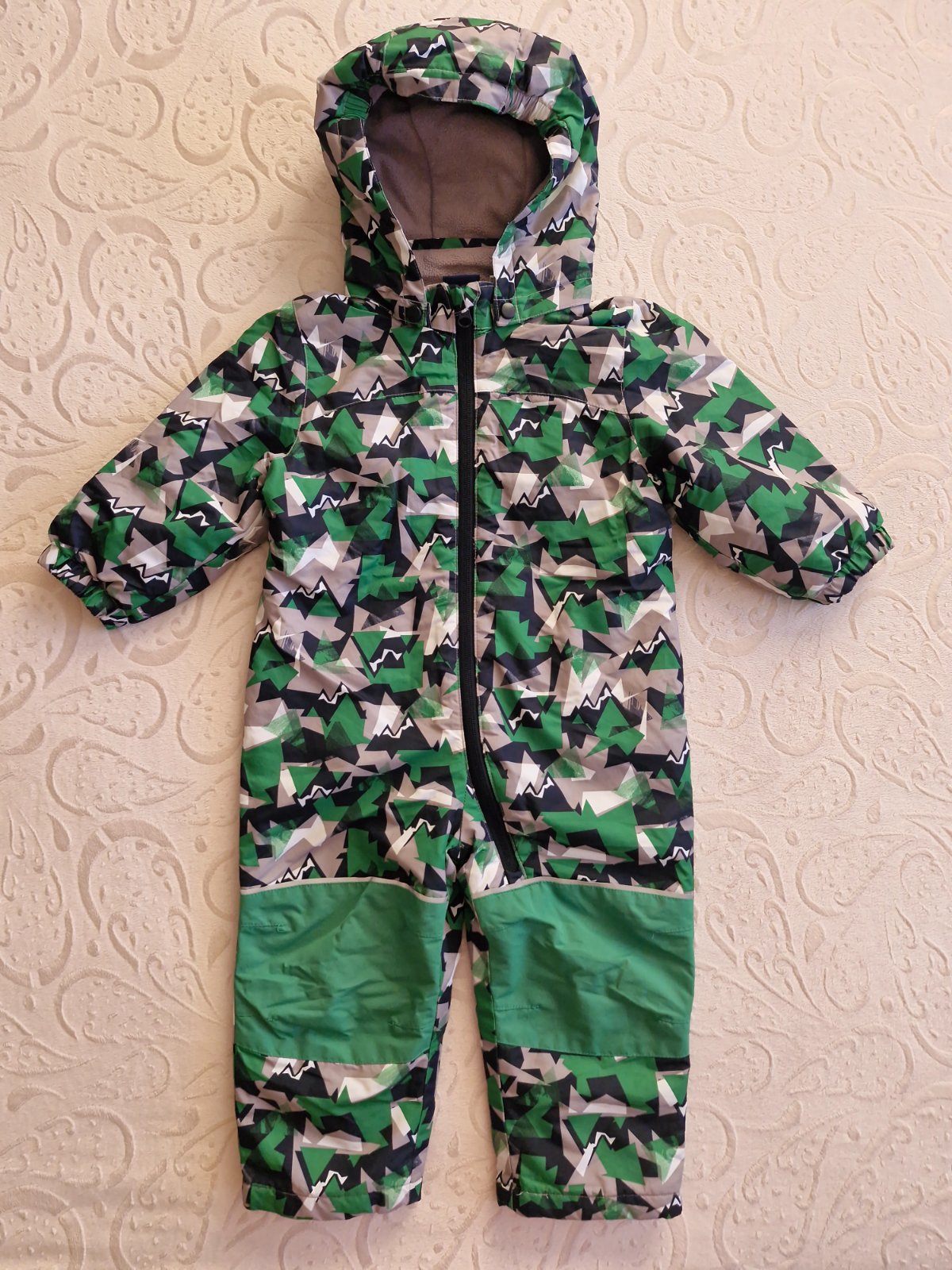 Zimny overal, kupovany cez bazar, ale stale je v super stave, nema ziadne poskodenia. Jedine gumicka na jednej nohe je trochu suchnuta, vid foto. Kapucna sa da odopnut. Velkost 86/92