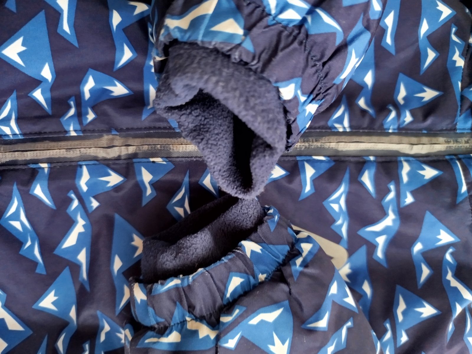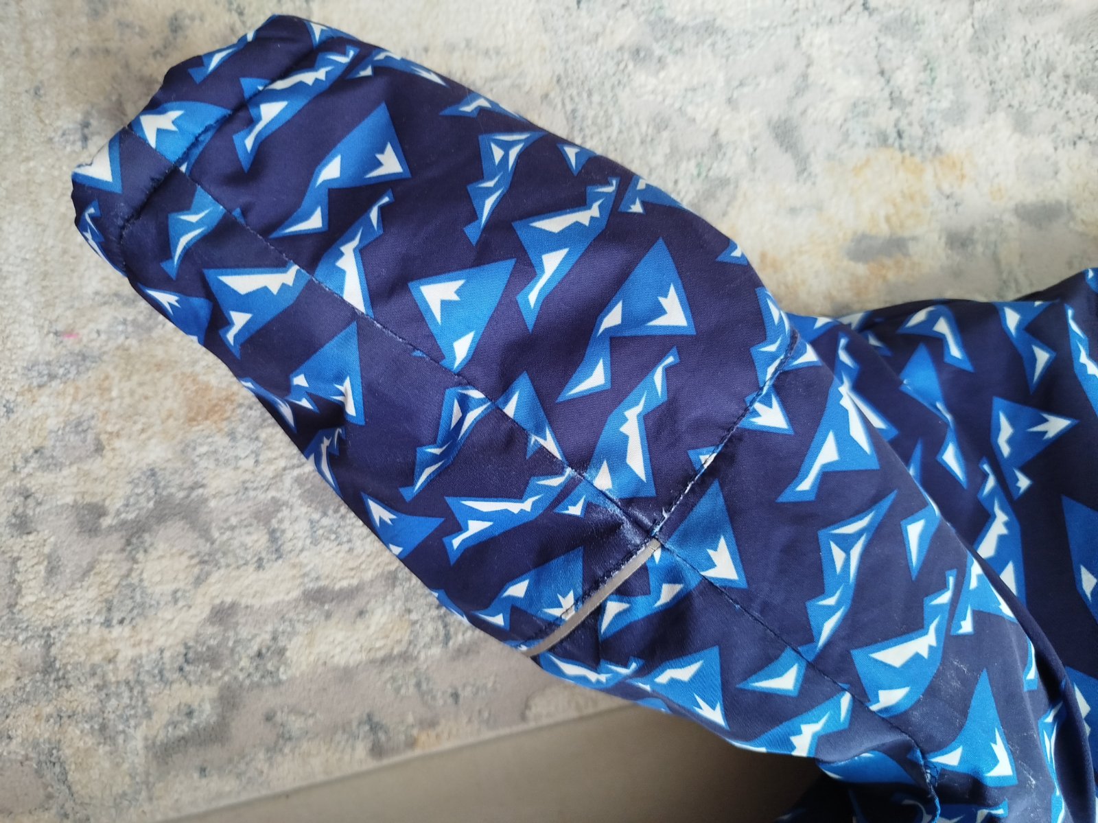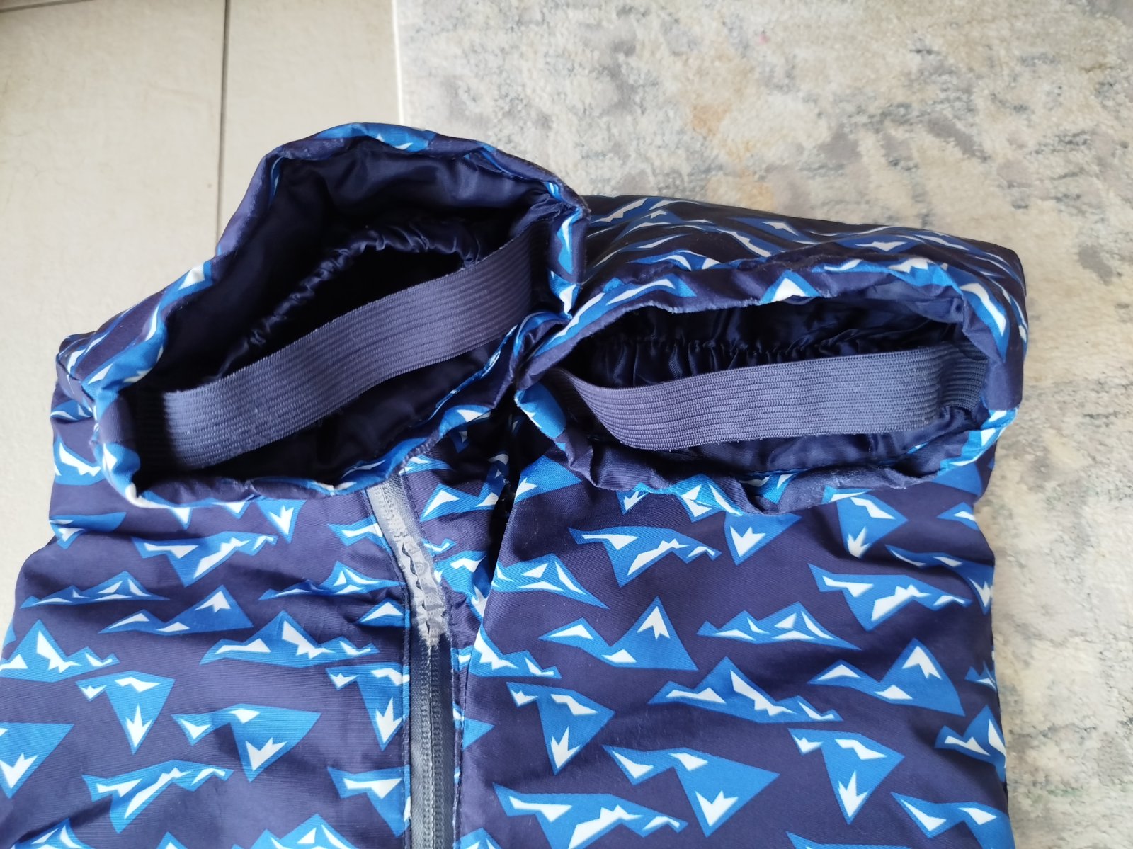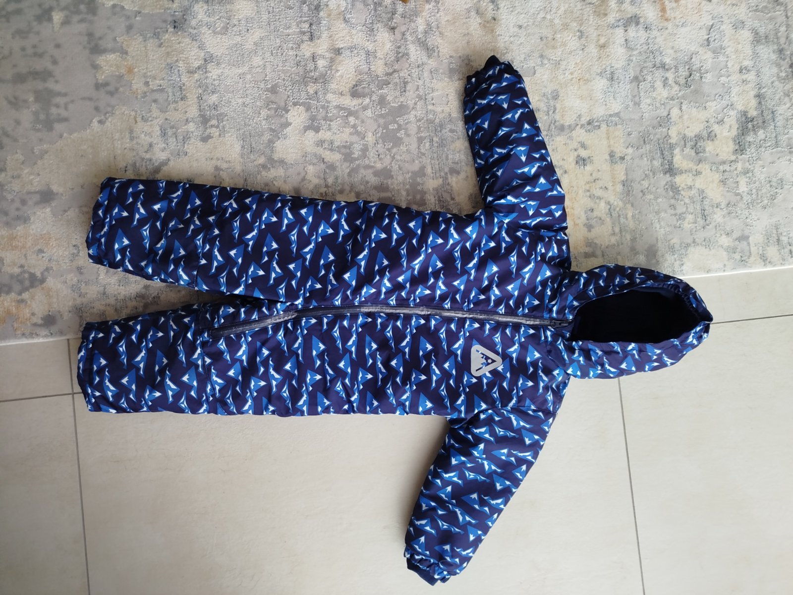 Noseny overal, posluzil 2 zimy. Velkost pise do 24 m, ale my sme ho nosili do 36 m. Gumicky bez poskodenia, zips funguje, spodok nie je vysuchany, velmi pekny stav. Nit medzi nozkami povolila, treba zasit. Male suchnutie na boku nozky, vid foto. Nevidiet to. Darujem k nakupu.