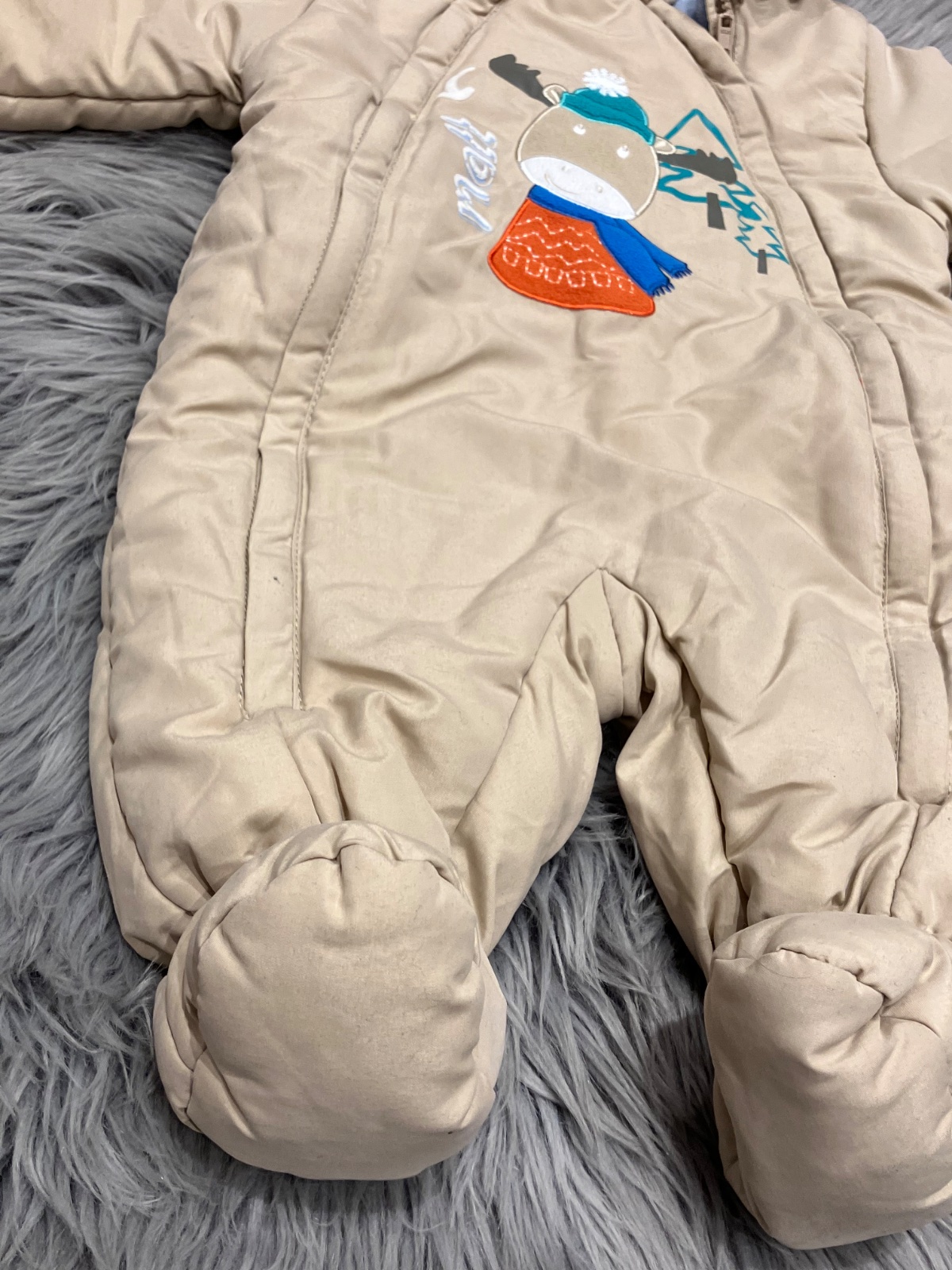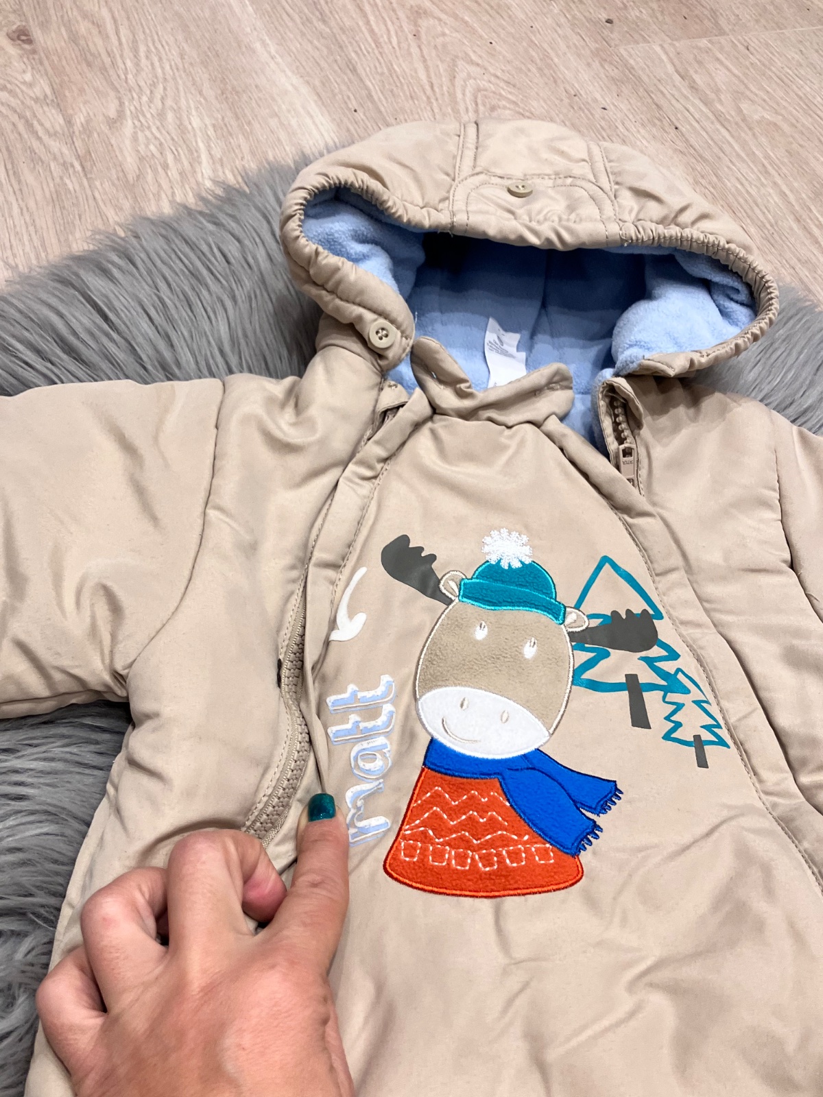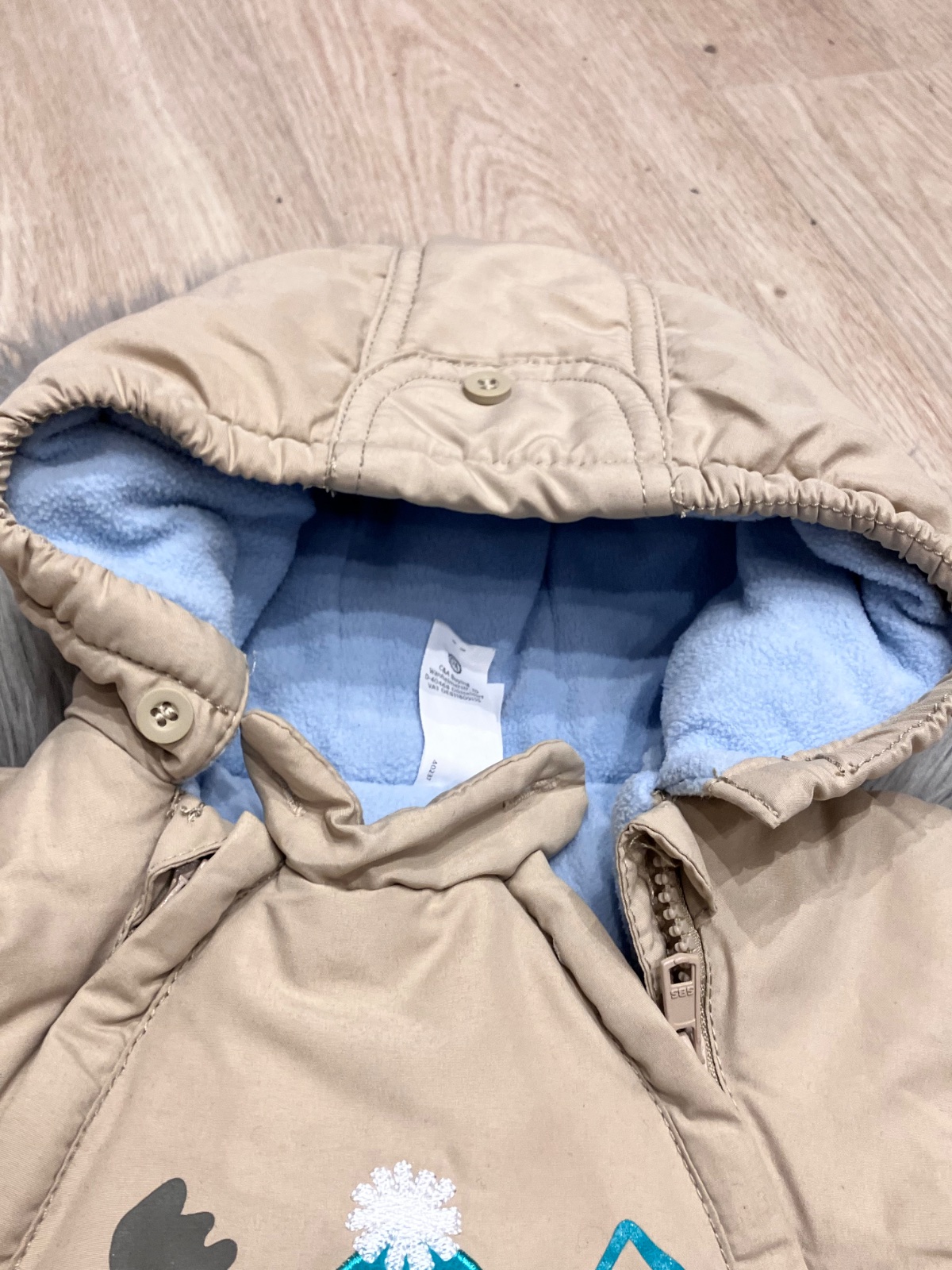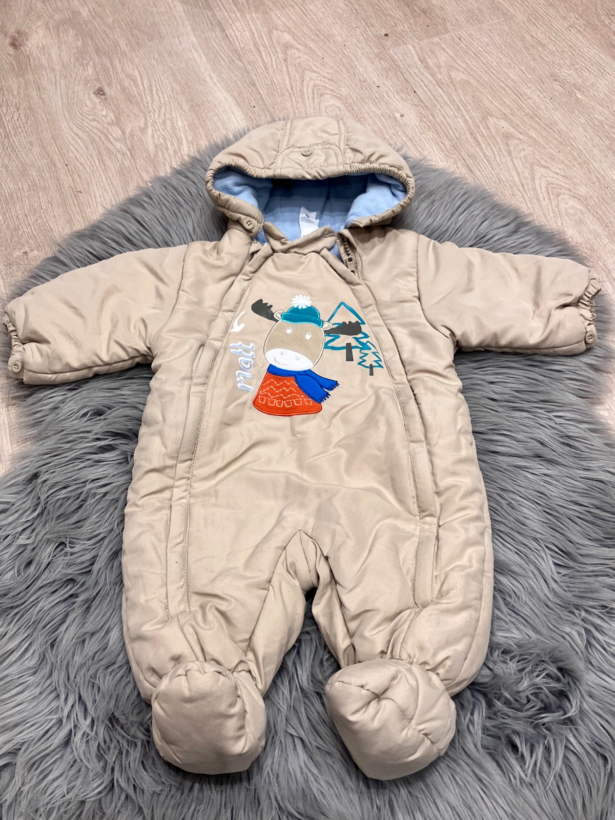 Chlapčenský hrubý šušťákový overal s kapucňou, vo vnútri jemný flís, zapínanie na zips.
