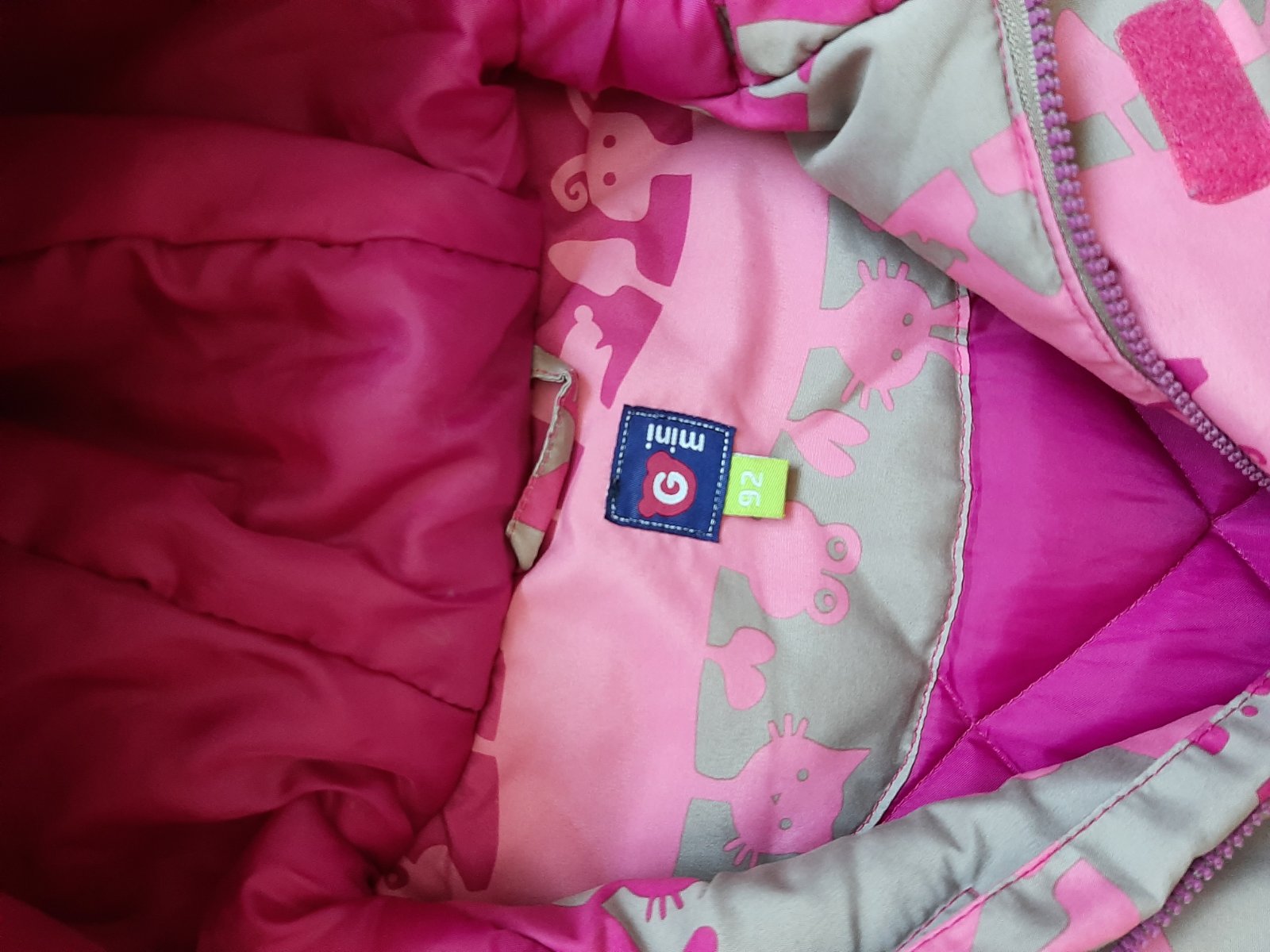 Veľkosť 86/92, farba je mierne vyblednutá, kombinéza fotená pri dennom svetle. Vnútri zateplená flísom. 479g