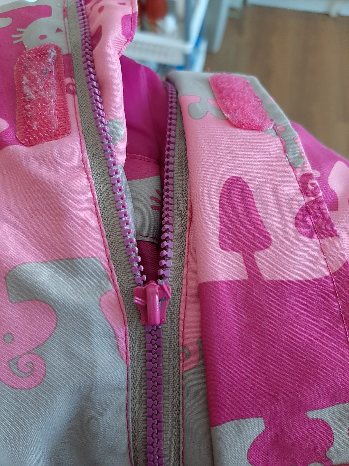 Teplucky zimny overal v peknom nosenom stave.Jedina chybicka, na zipse je odtrhnuta ta cast, ktorou sa zips taha, ale zips je plne funkčný, sikovna mamina si poradi, zohladnene v cene.