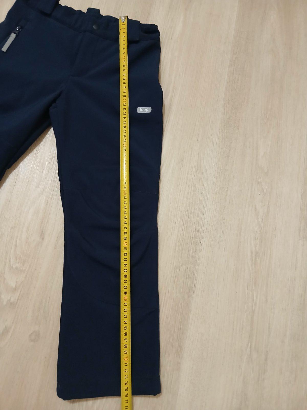 Predám softsheelové nohavice v super stave, nočný stĺpec 3000, podšité teplým flisom, majú jedno vrecko a v páse gombík a gumička - možnosť regulácie v páse. Rozmery vid foto.