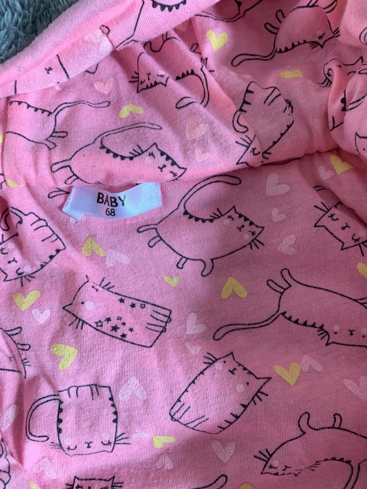 - ružová podšívka s potlačou s mačkami a srdiečkami