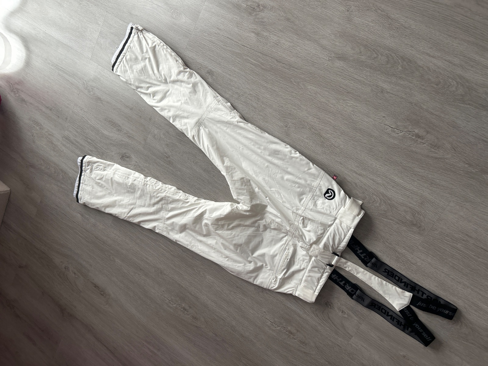 Lyžiarske nohavice červeno-biela kombinácia ...veľkosť M, perfektne pohodlne nohavice , v pase na gumu a plus sa dajú regulovať podľa potreby .majú malú chybu , od lyží sa na jednom kúsku roztrhli ...