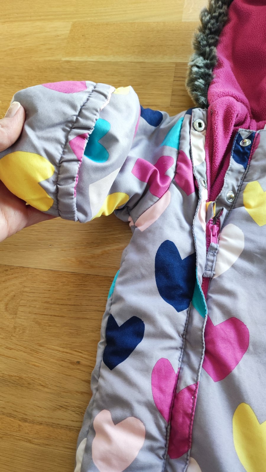 Marks & Spencer krasny ružový jemnučky detský overal , vo velkosti píšu 3-6 mesiacov, no určite ponosite dlhšie, s kapucnou a bez poškodení Dlžka je 64cm, dlžka rukáva od krku je 37cm a širka v pod...