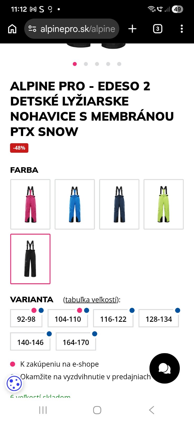 Predam kvalitne a komfortne lyziarske nohavice zn. Alpine pro, kupovane nami, nosene 1 sezonu. Ide o dvojcislie 164/170, nasa dlhorocna skusenost je, ze Alpine pro vyraba vacsie veci, takze isto na 170 cm plus par cm este stale sedia, nase dieta ma momentalne 175 cm a este v nich lyzovalo. Vodny stlpec 10 000. Prane v gely na funkcne pradlo, momentalne vyprane, naimpregnovane, pripravene na dalsiu sezonu. Povodna suma 99,99 eur, kupovali sme v akcii za 51,99 eur. Celkova dlzka vid aj sposob merania na fotkach (len oproti fotkam treba vsade pripocitat 1 cm, nas meter zacina na 2 cm 🙈🙉🙊) je 109 cm, od rozkroku 79 cm. Pas 2x 38 cm, mozne regulovat suchym zipsom. Sed po pas 33cm, vratane pasu 37cm. Mozne regulovat zipsom na lyziarku. Predavam aj lyziarsku bundu, aj rukavice, v pripade odberu komplet dohoda na cene mozna.