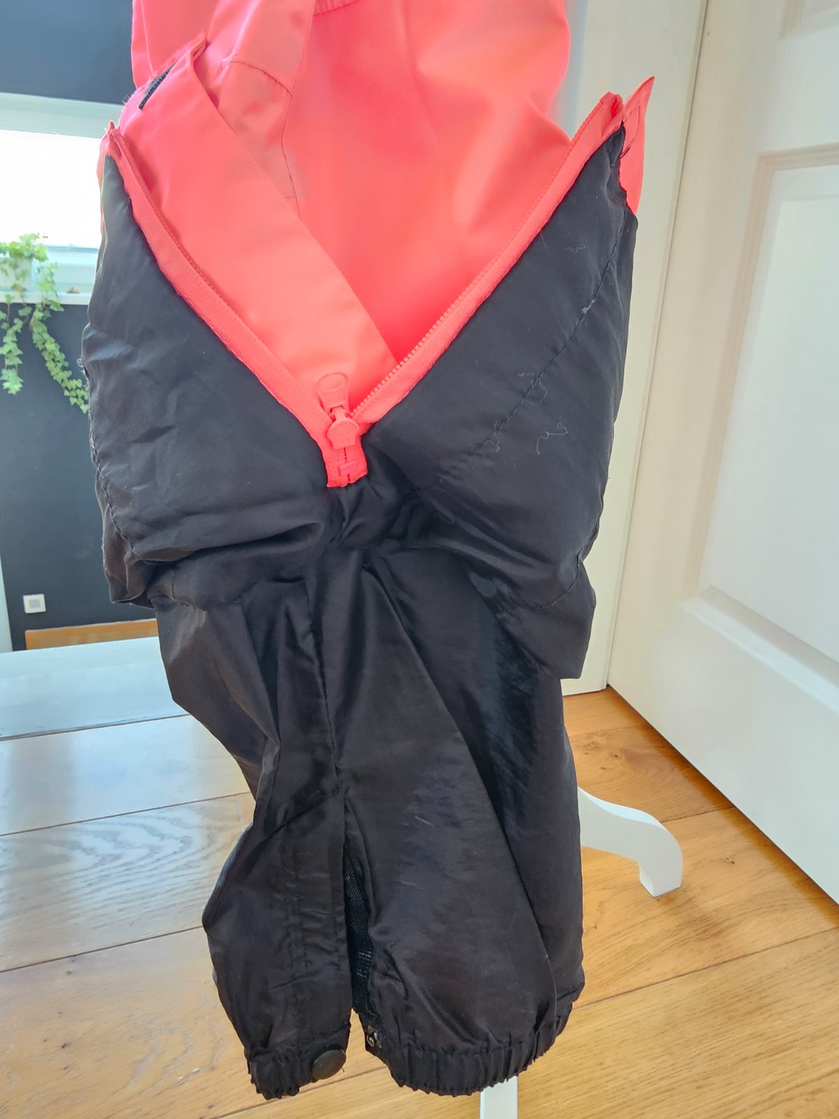 Asi 2x oblečené, žiadne poškodenia ohľadom použivania len medzi nohami miene znečistené od lyžiarskej pomy. Odnímatelné traky, na chrbte v oblast krížov vyvýšené.