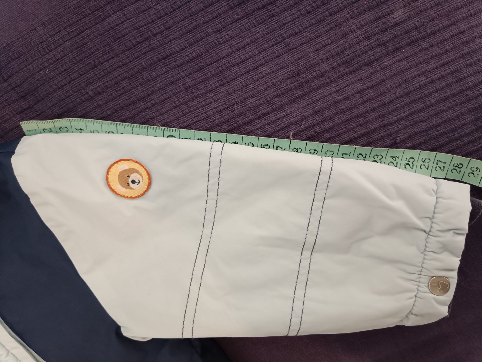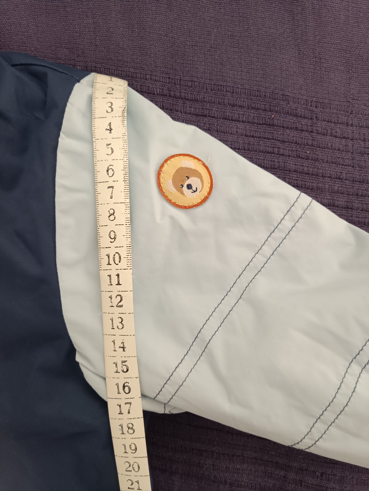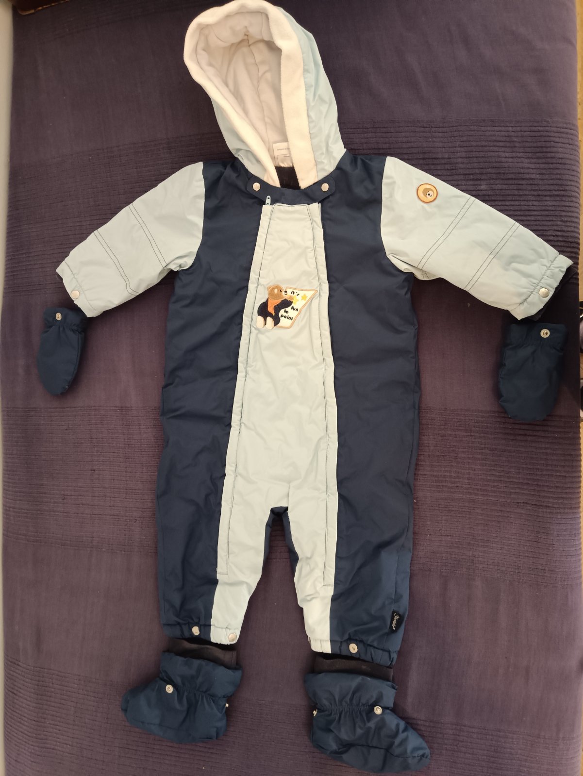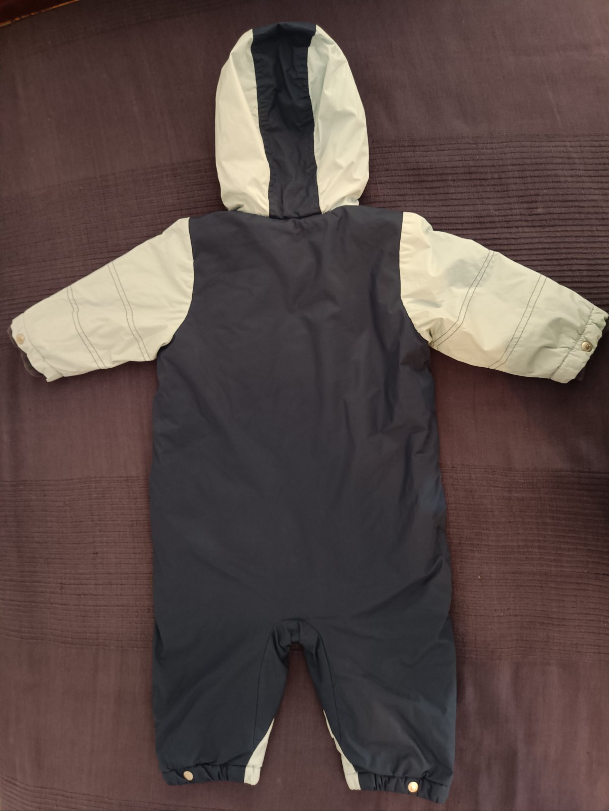 Zachovalá detská zateplená kombinéza s kapucňou, bežné známky používania