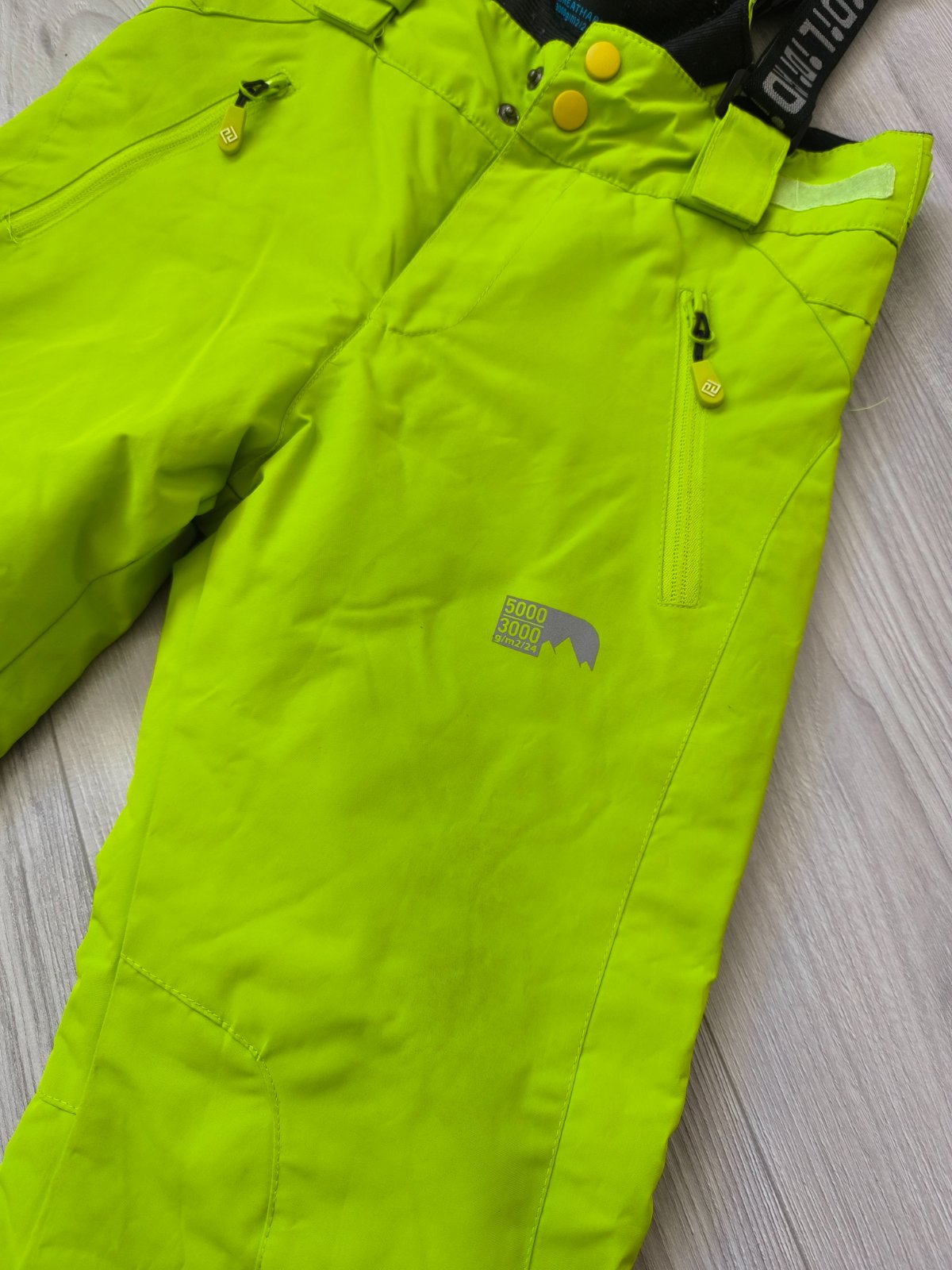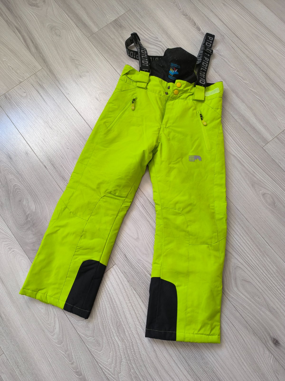 Detské oteplovačky, kvalitné, bez poškodenia, vodný stĺpec 5000, veľkosť je písaná 122,ale sedí tak na 134, sú omnoho väčšie. Celková dĺžka po pás je 77 cm a vnútorná dĺžka je 52 cm.