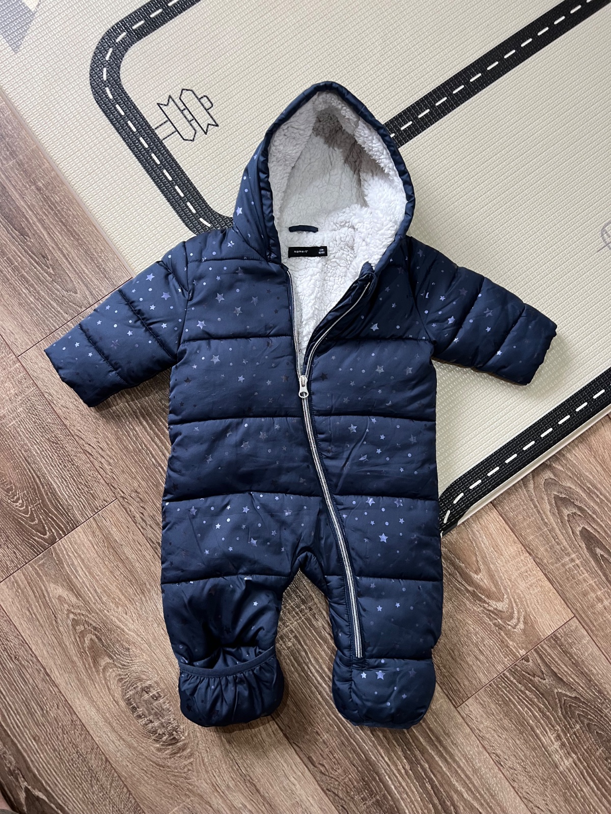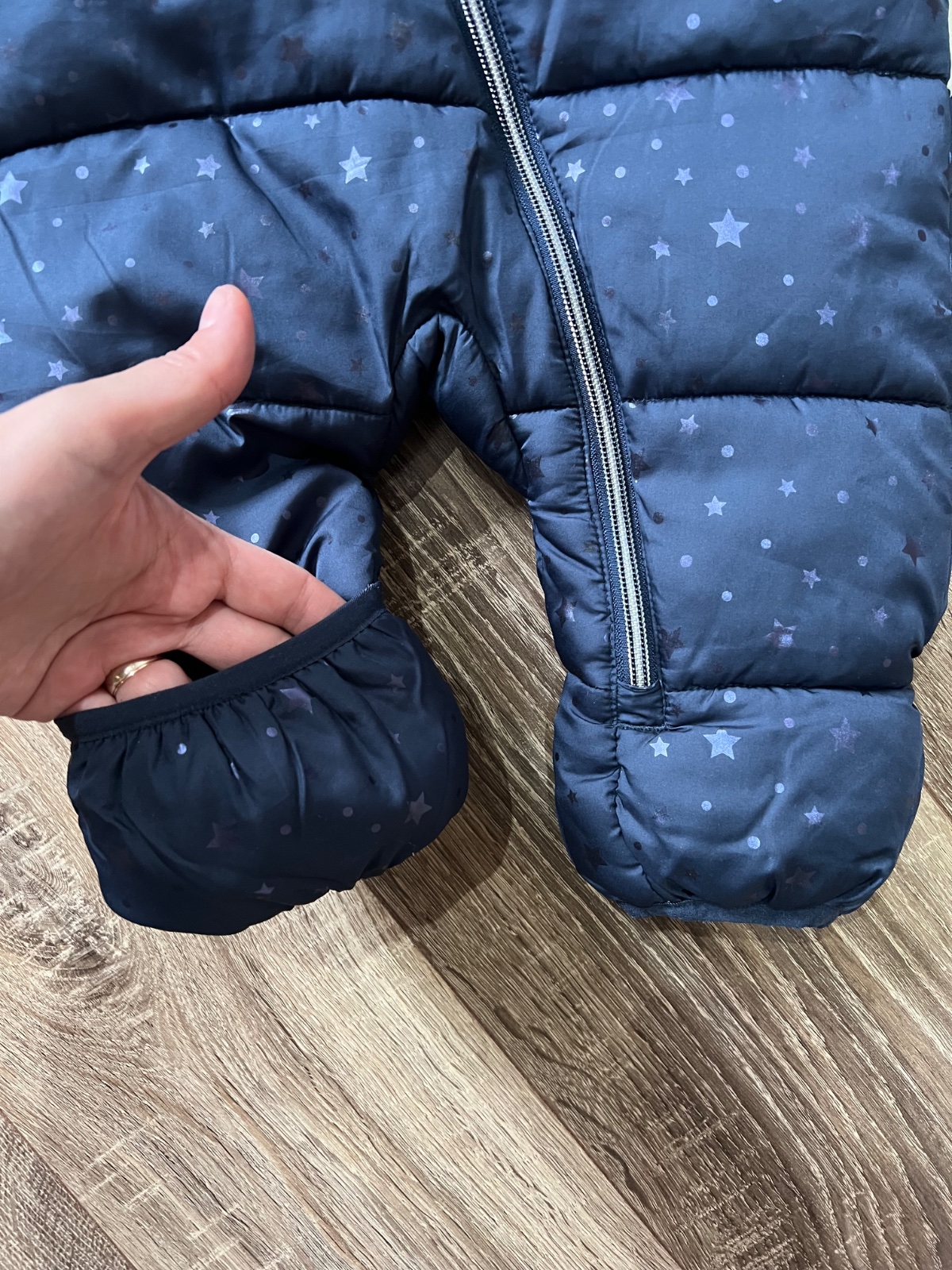 Zimná kombinéza 62/68. Nôžky sa dajú “zaklápať” alebo nechať voľné pre topánočky.